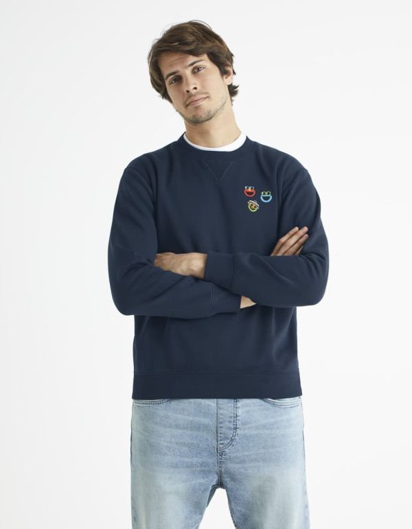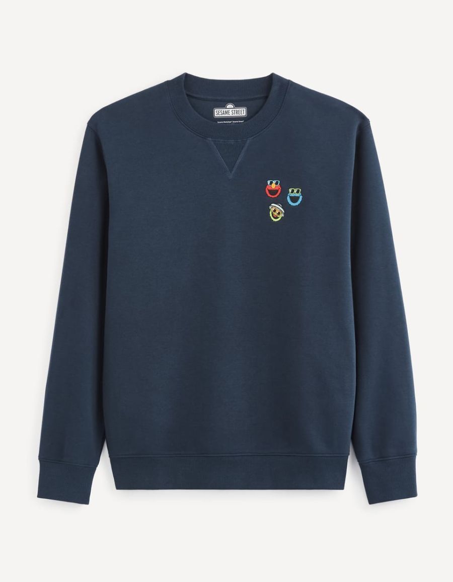 Si la série Sesame Street a bercé votre enfance, vous allez adorer ce sweatshirt marine pour homme. Il possède un col rond, des manches longues et a une composition en coton mélangé. Sur la poitrine, retrouvez les personnages Cookie Monster, Elmo et Oscar