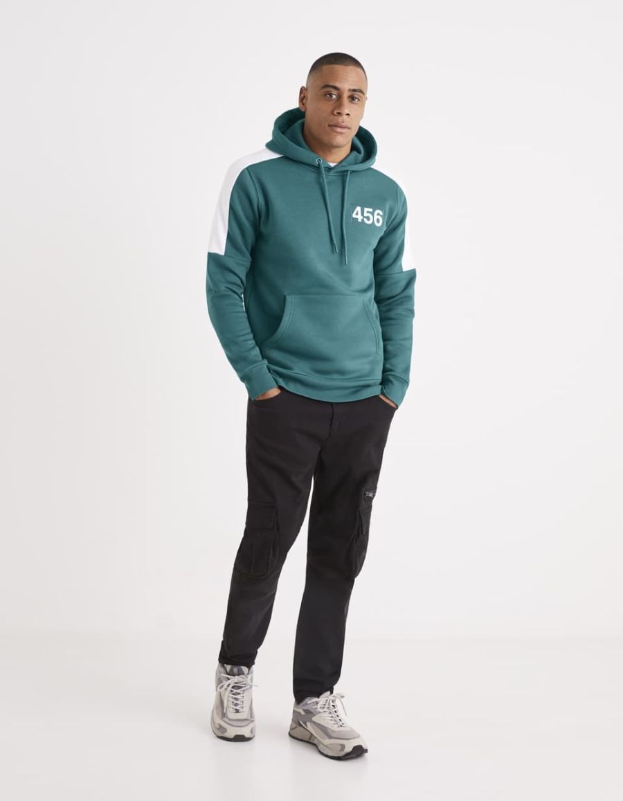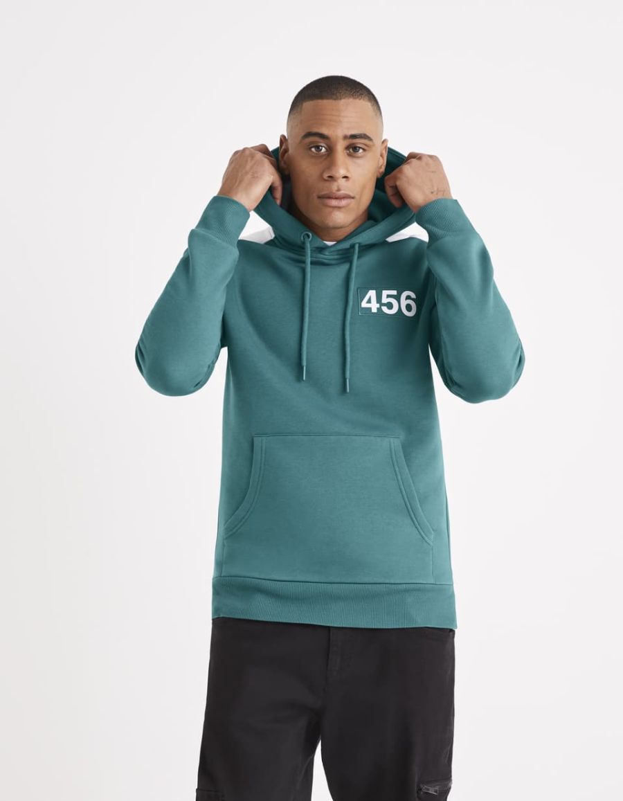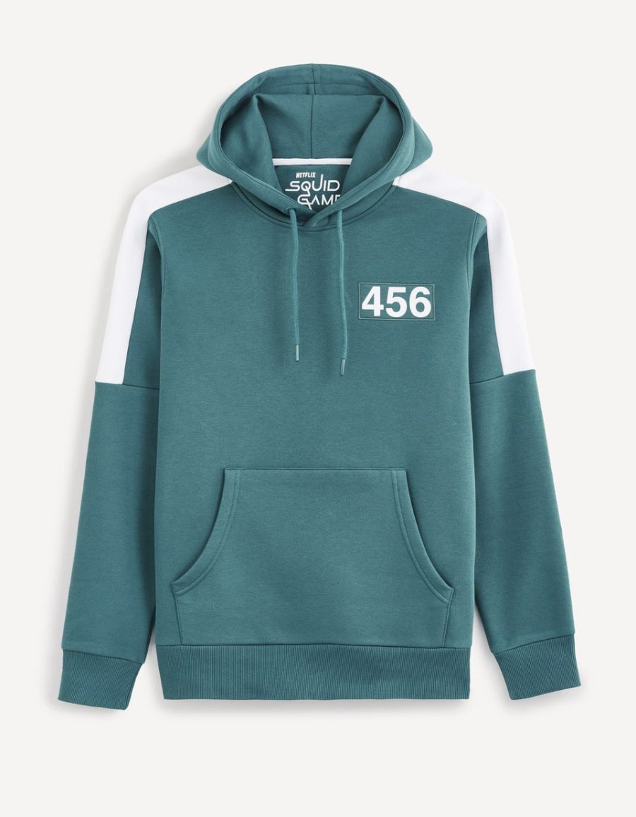 Vous avez adoré la série coréenne à succès Squid Game, sortie cette année sur Netflix ? Alors retrouvez le sweat vert emblématique du gagnant et héros du jeu, Seong Gi‑Hun, qui porte le numéro 456. Ce sweat pour homme possède une capuche avec cordon de se