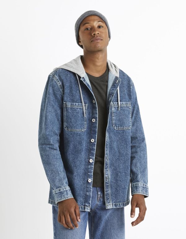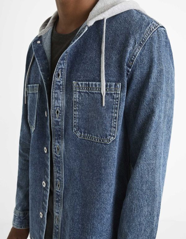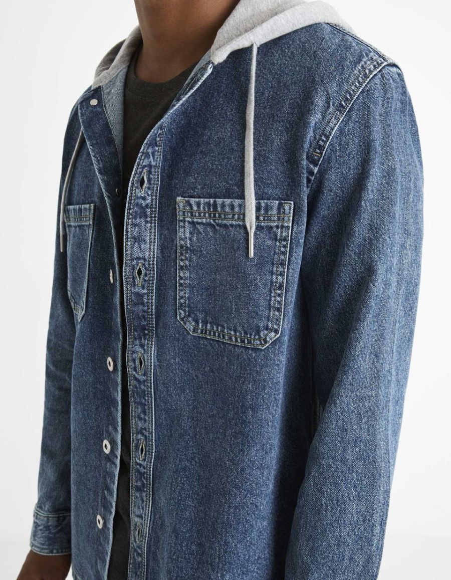 Avec sa capuche en jersey et ses manches longues, cette surchemise en jean pour homme permet d’avoir chaud dès la fraîcheur revenue. Fabriquée en coton et fermée par des boutons, elle apporte un véritable confort et permet de bouger sans être gêné.