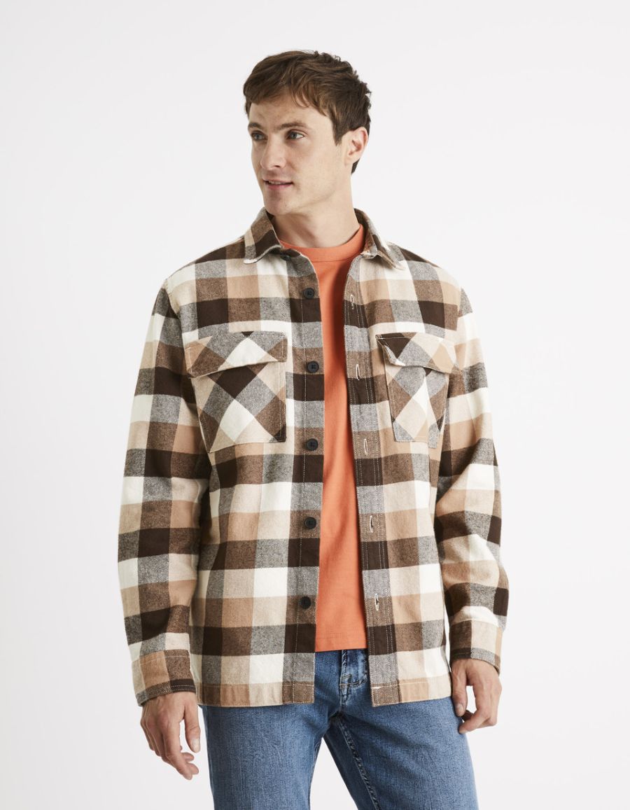 Surchemise à carreaux 100% coton - camel