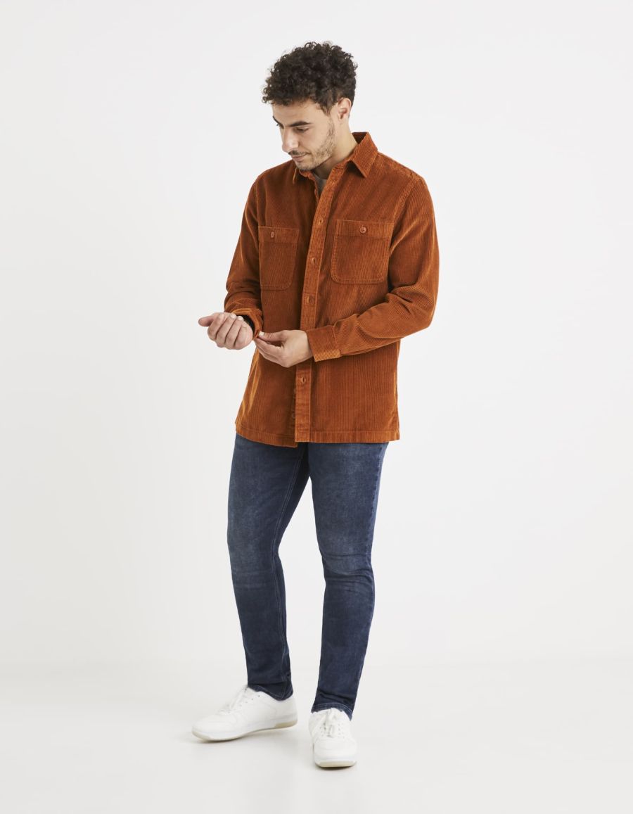 Vous porterez cette surchemise en velours 100% coton pour homme idéalement sur un jean, dans un esprit casual et cool sans efforts. La chemise a des manches longues, une coupe regular, un col français et deux poches plaquées sur la poitrine avec un bouton