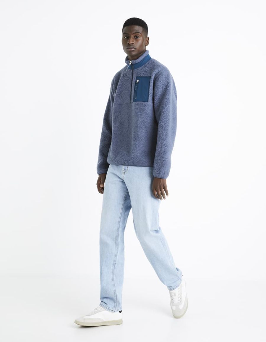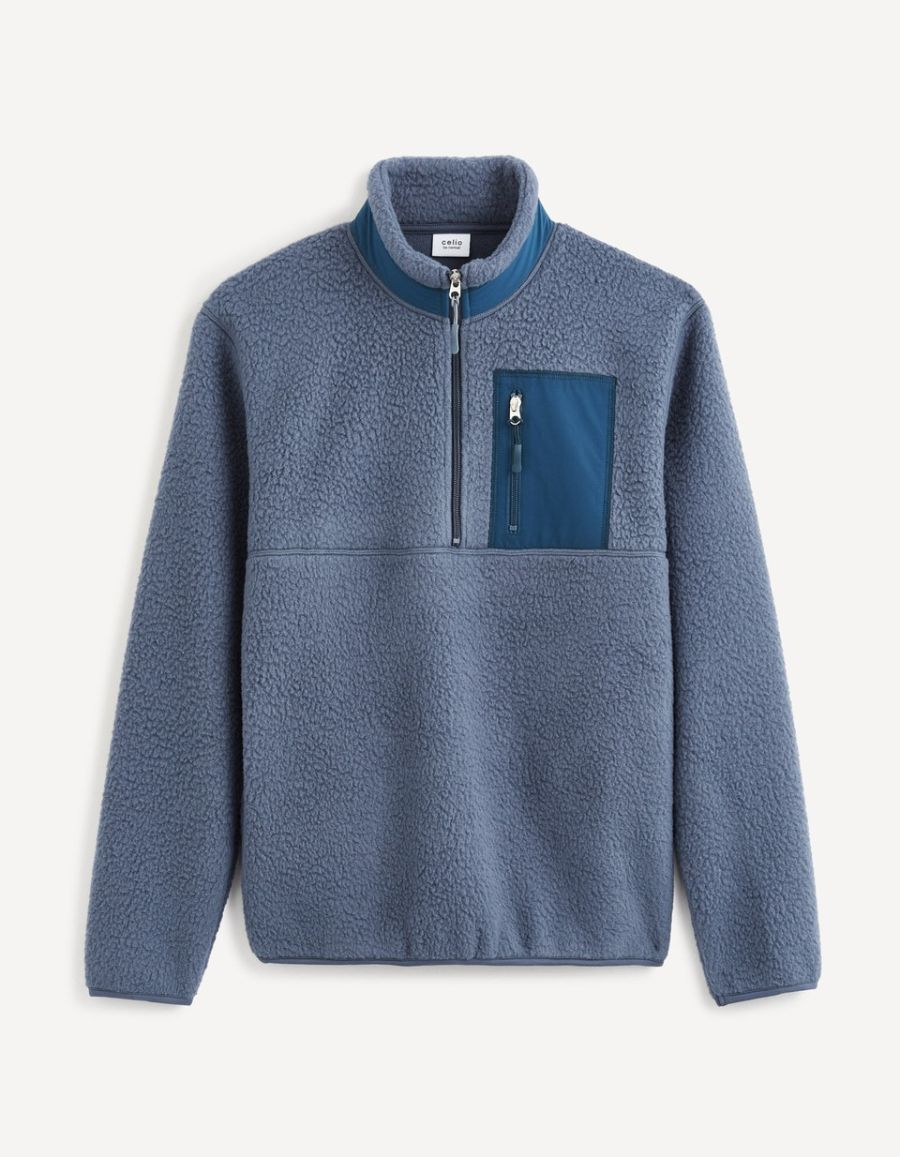 Sweat bi-matière en polaire - bleu gris
