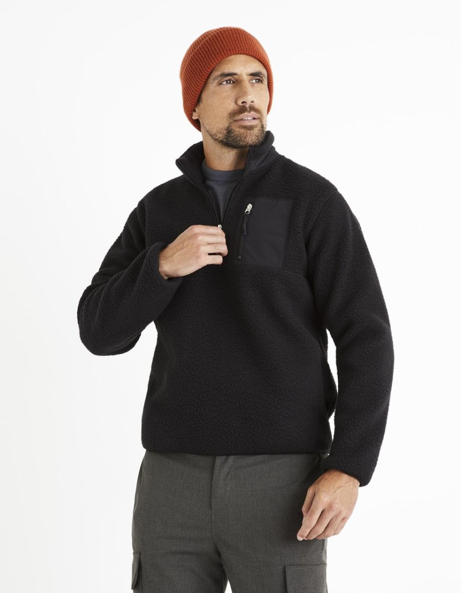 Sweat bi-matière en polaire - noir
