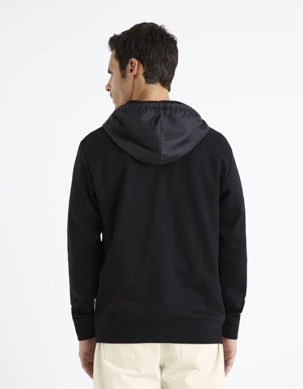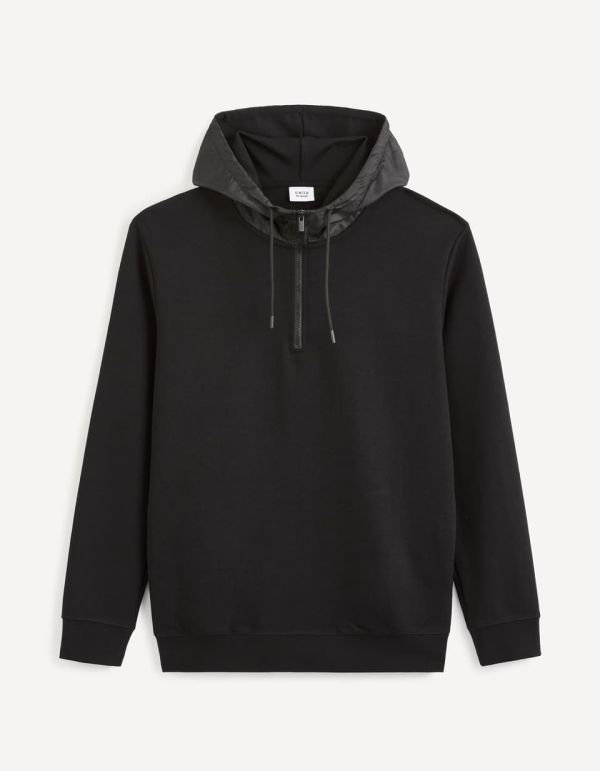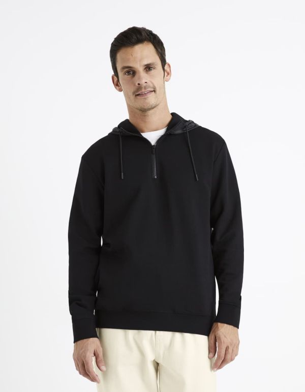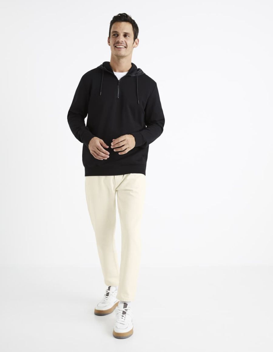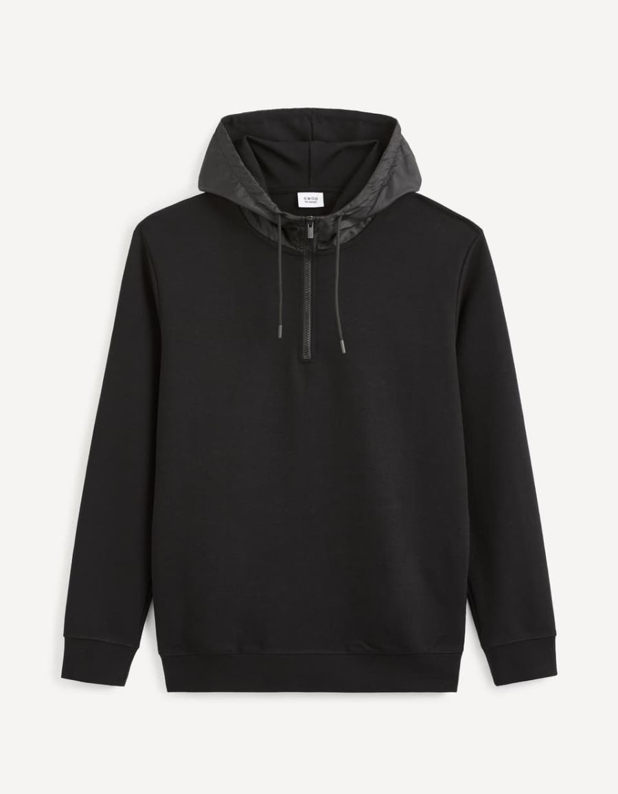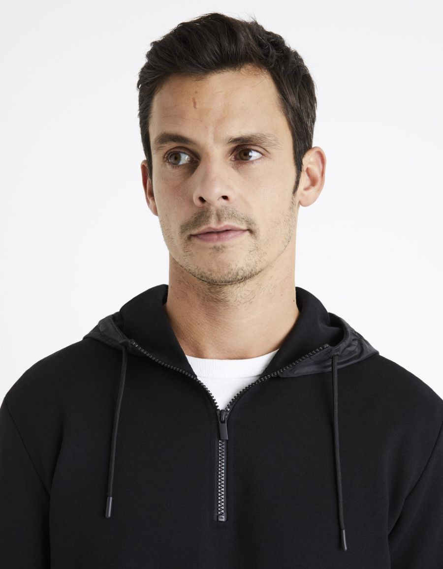 Adoptez la polaire en coton mélangé avec ce sweat pour homme. Sa capuche en matière contrastante et son col zippé en font un hoodie idéal pour accompagner un jean. Sa couleur unie sera facile à assortir à toutes vos tenues décontractées.