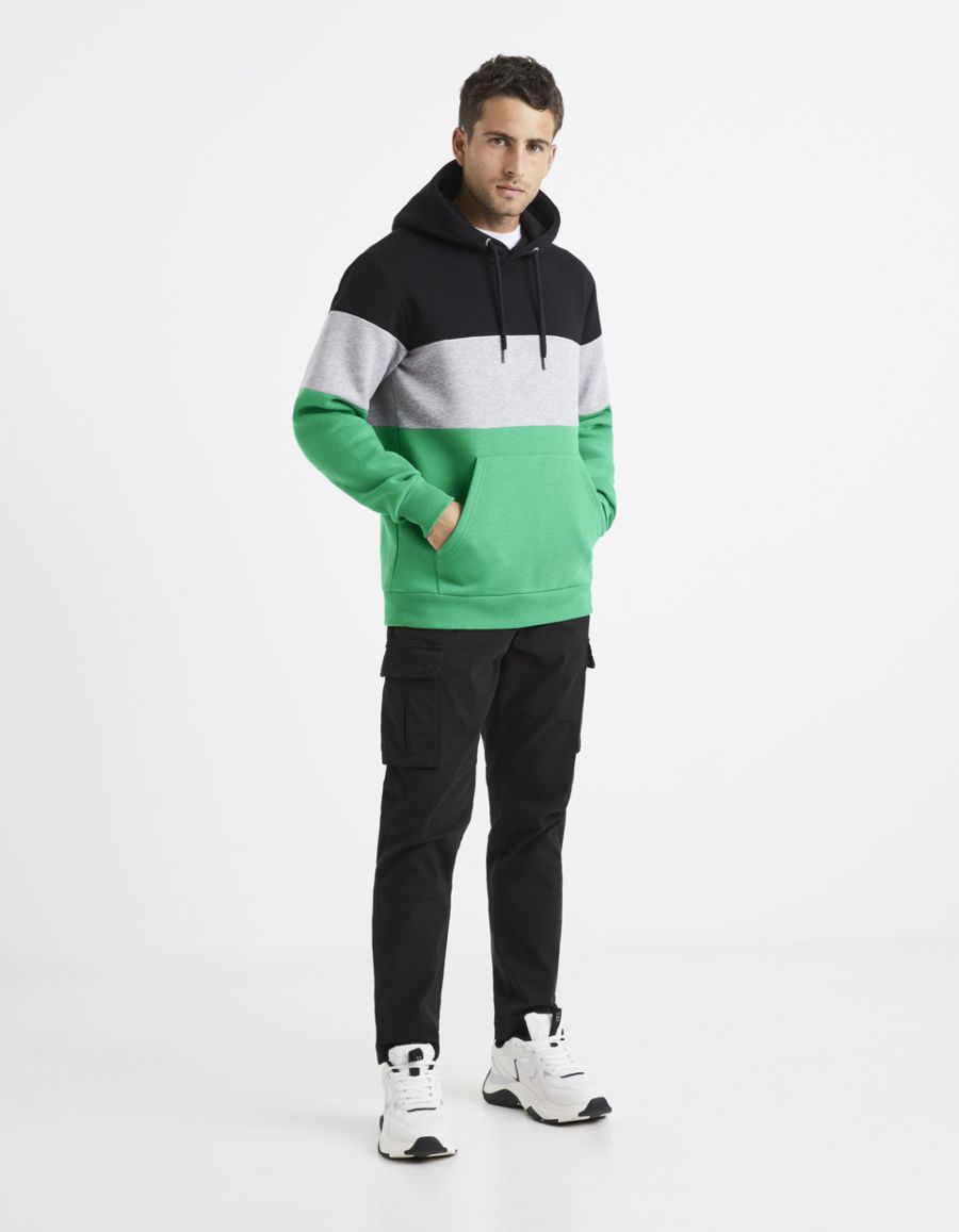 Adoptez le look unique de ce sweat color block, que vous porterez aussi bien avec un jean qu'un jogging. Ce sweat pour homme est équipé d'une capuche avec cordon de serrage et d'une poche ventrale. Son tissu est en coton mélangé.