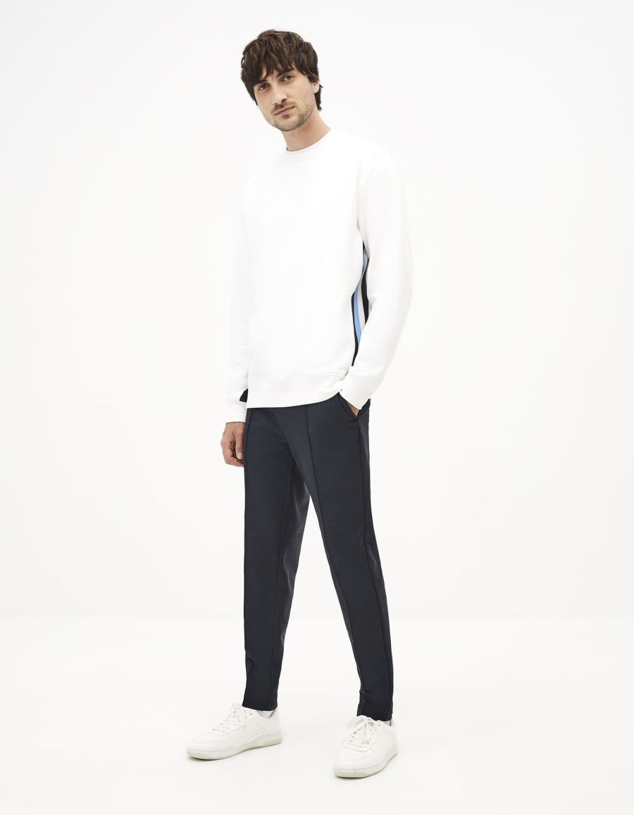 Les bandes colorées de ce sweat pour homme font toute son originalité et créent un style unique. Il accompagnera facilement un pantalon casual, comme un chino ou un jean. La composition de sa matière est en coton mélangé.