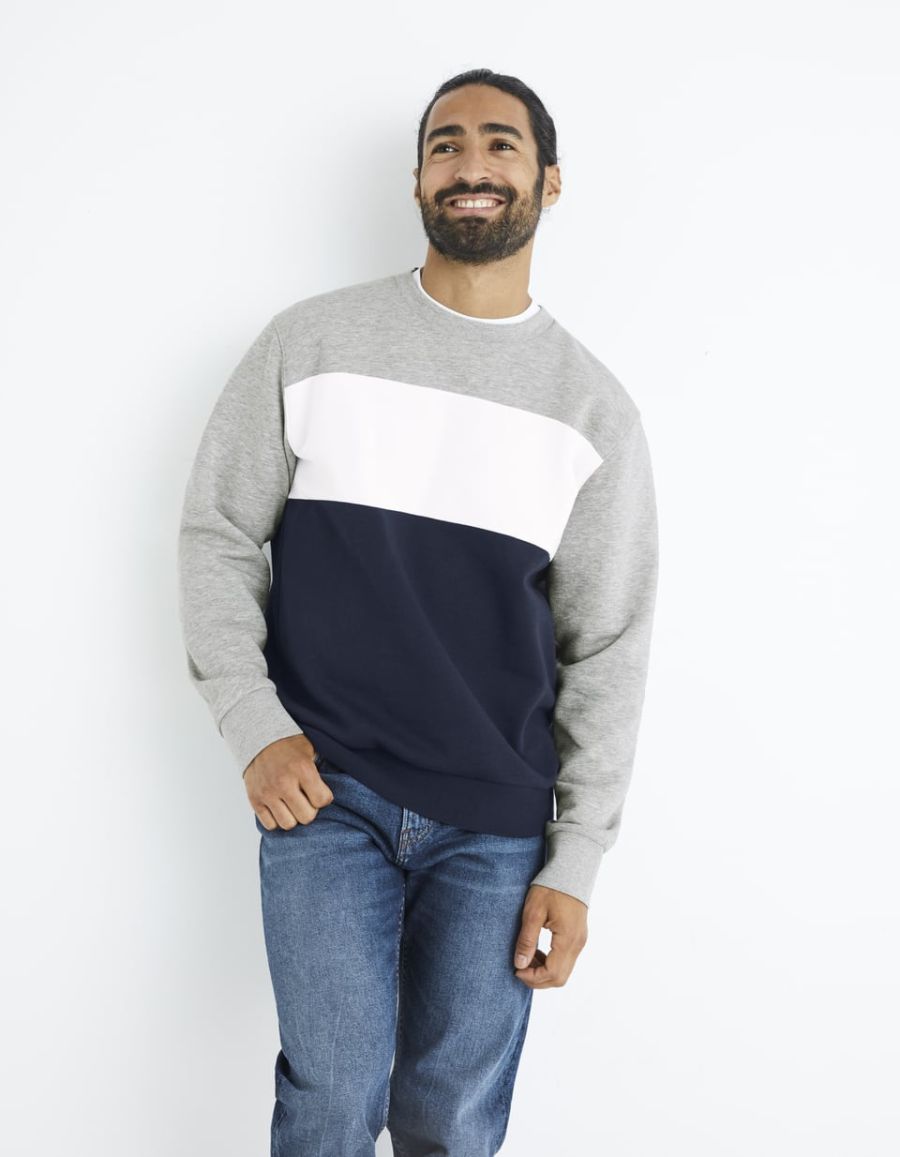 Le color block c'est LA tendance du moment dans le prêt-à-porter pour homme ! Soyez stylé et découvrez ce beau sweat manches longues à col rond en coton mélangé, que vous porterez avec un jean et une paire de baskets blanches.