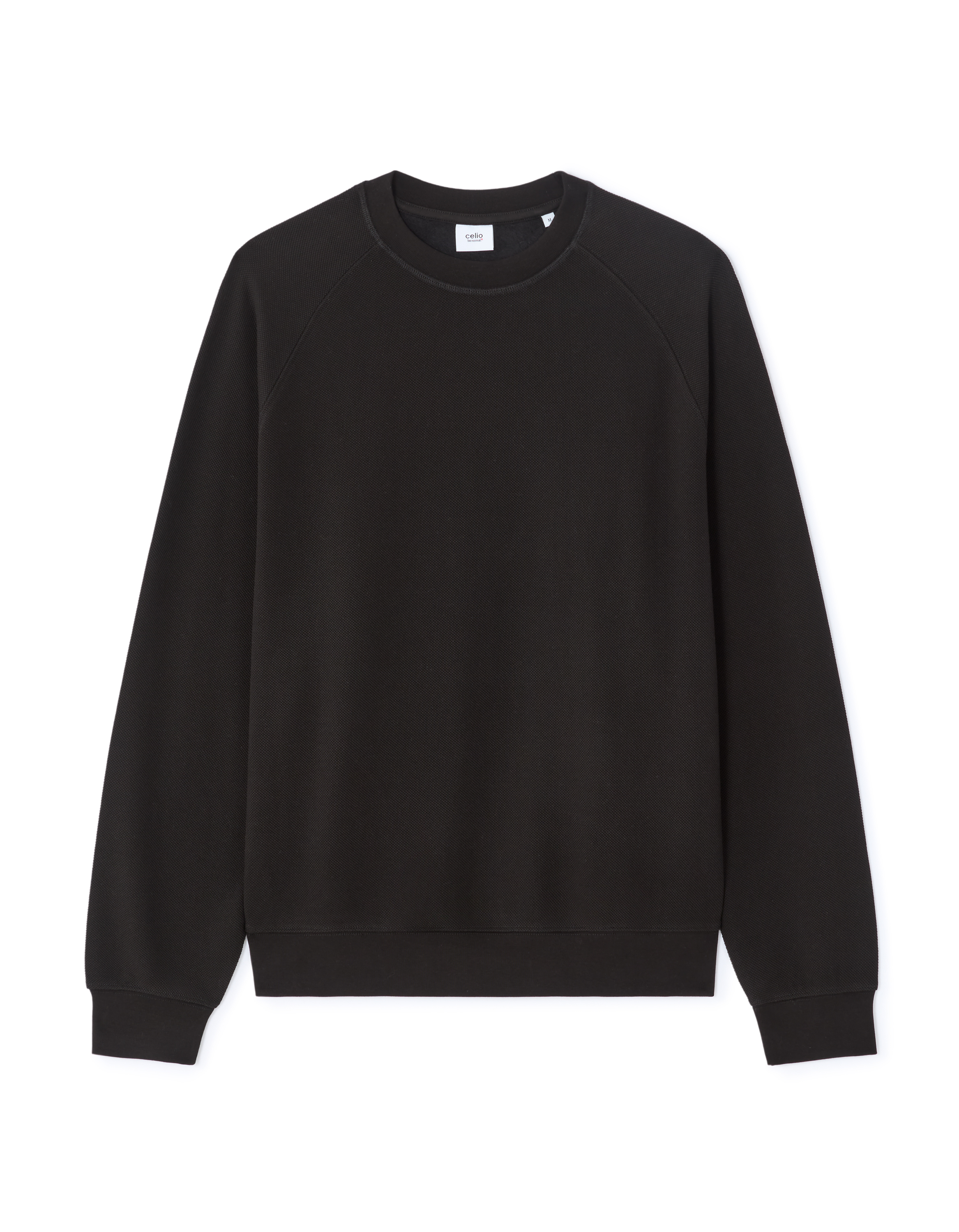 Pull col rond en maille flammée 100% coton - noir Pull col rond en maille flammée 100% coton - noir Nouveauté