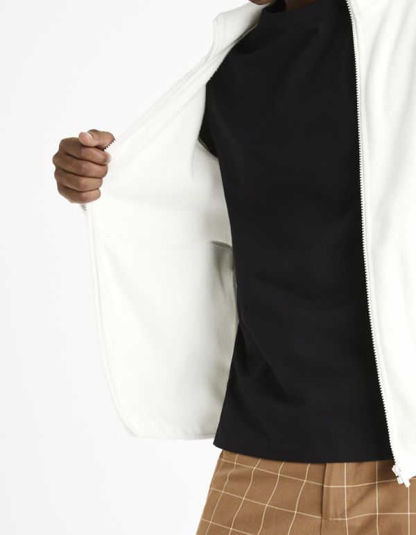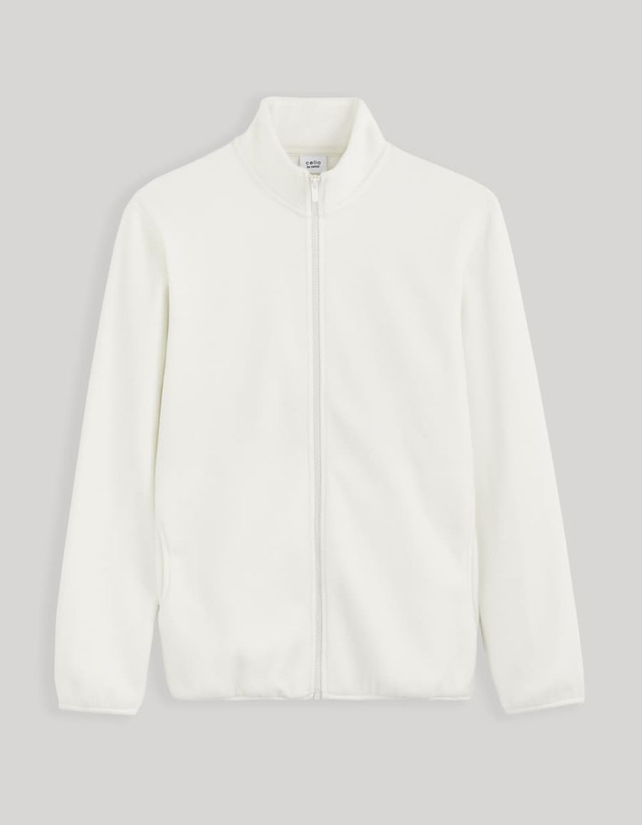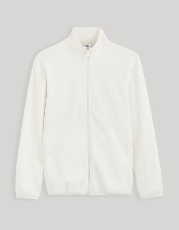Sweat polaire zippé col montant - ecru