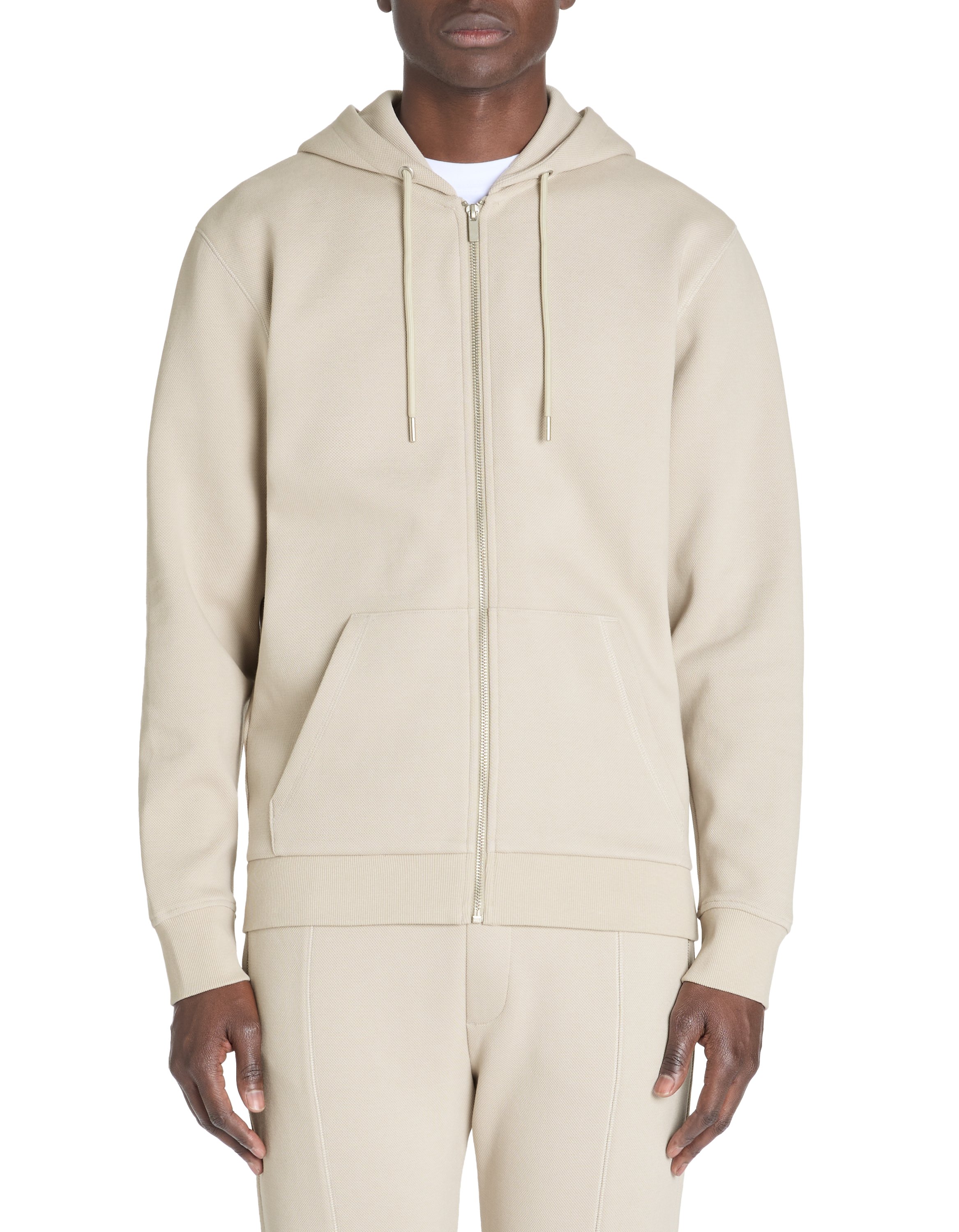 Sweat zippé à capuche regular en piqué - taupe Sweat zippé à capuche regular en piqué - taupe Nouveauté
