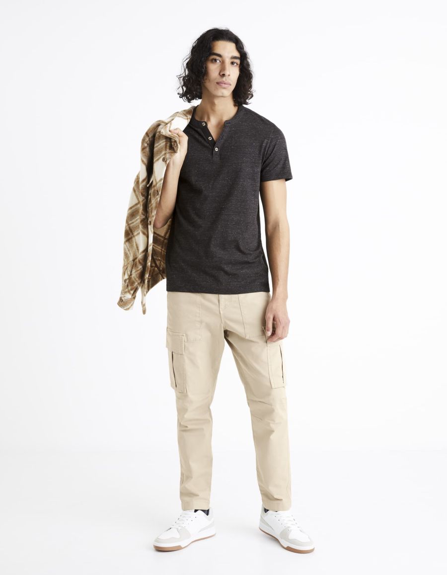 T-shirt col henley coton mélangé - noir