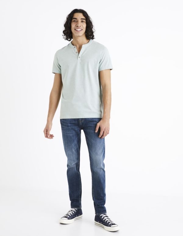 Ce t-shirt pour homme allie un col henley boutonné et un tissu chiné en coton mélangé pour créer un style à l'esprit casual cool. Il pourra être assorti tout simplement à un bermuda ou encore à un pantalon chino.