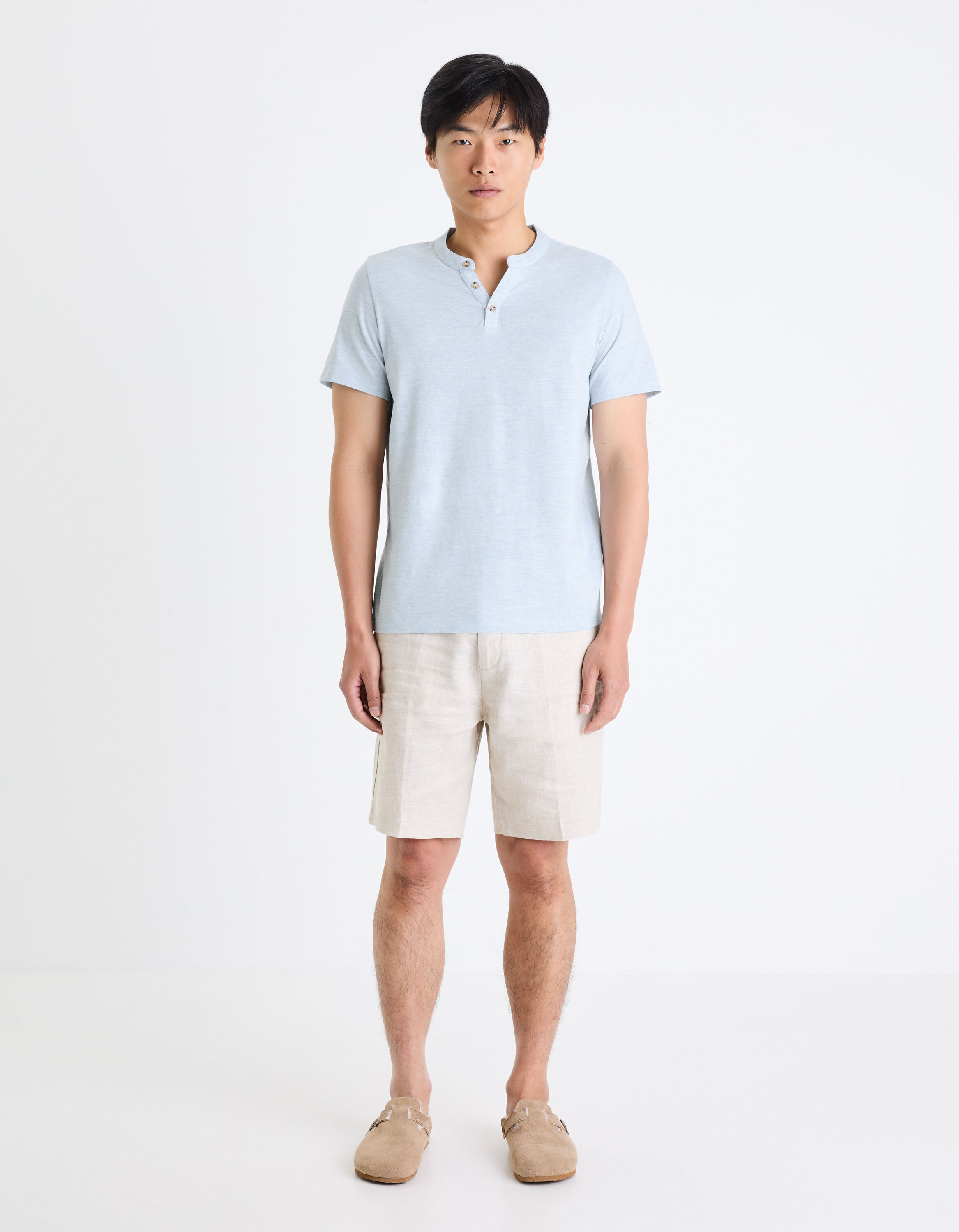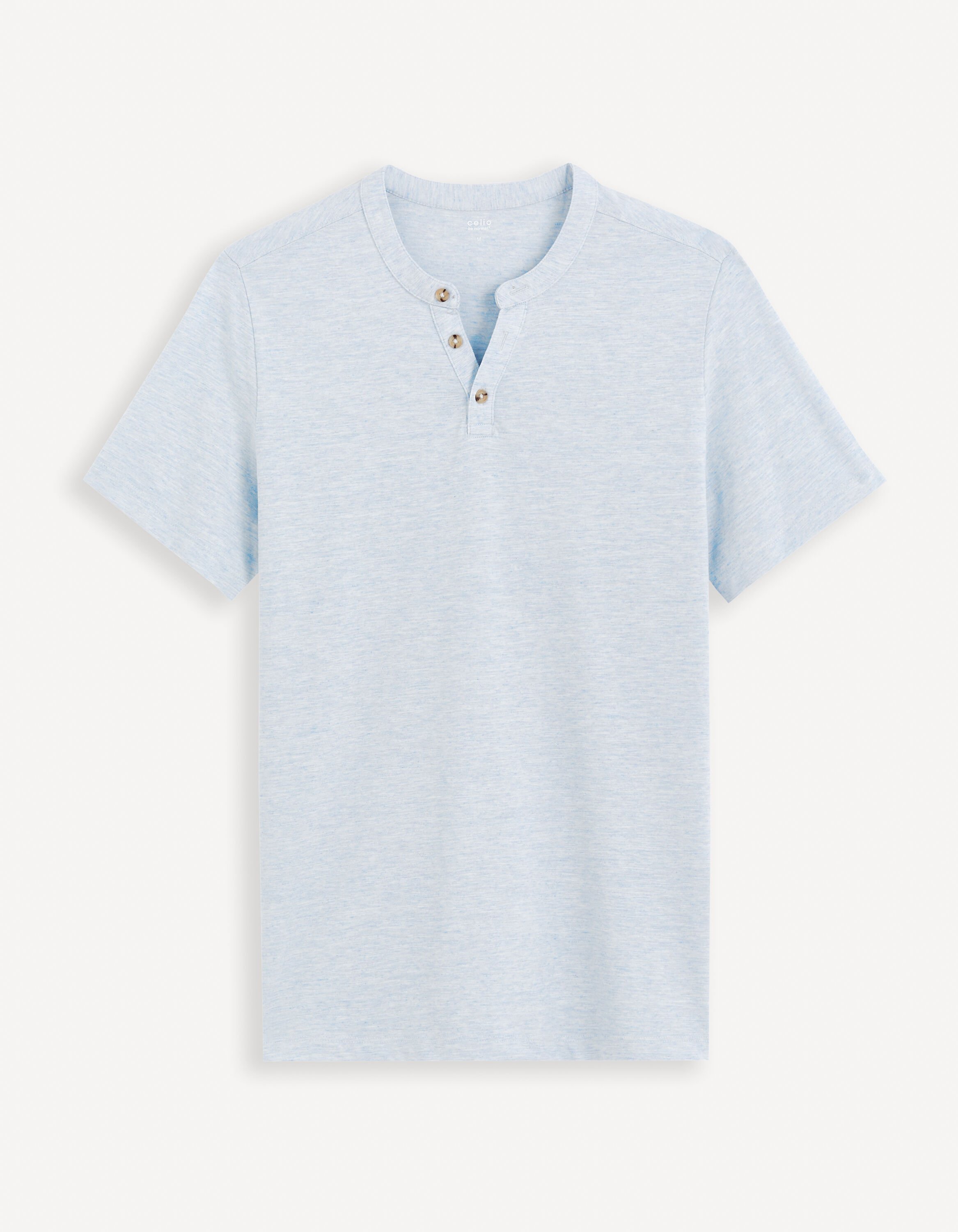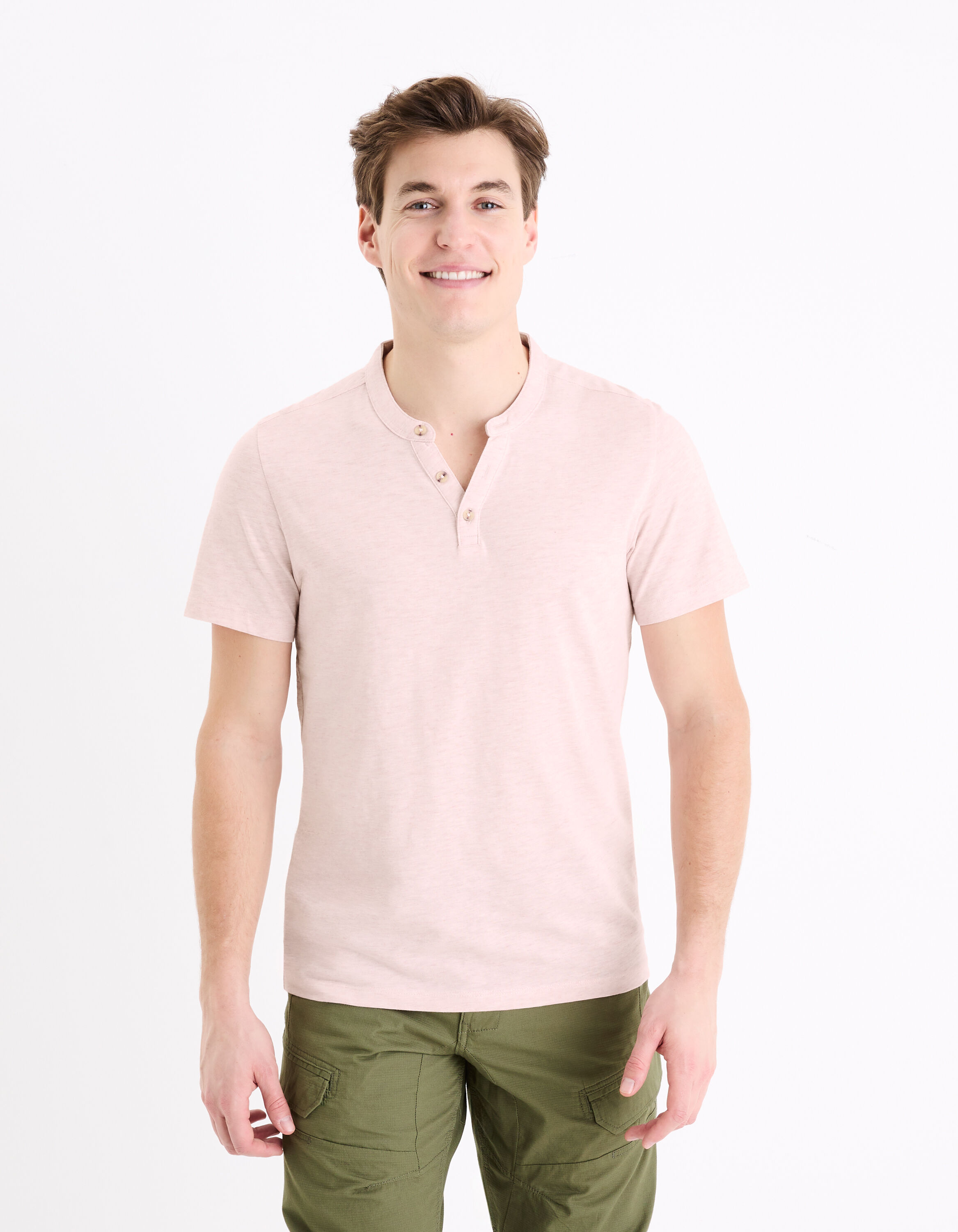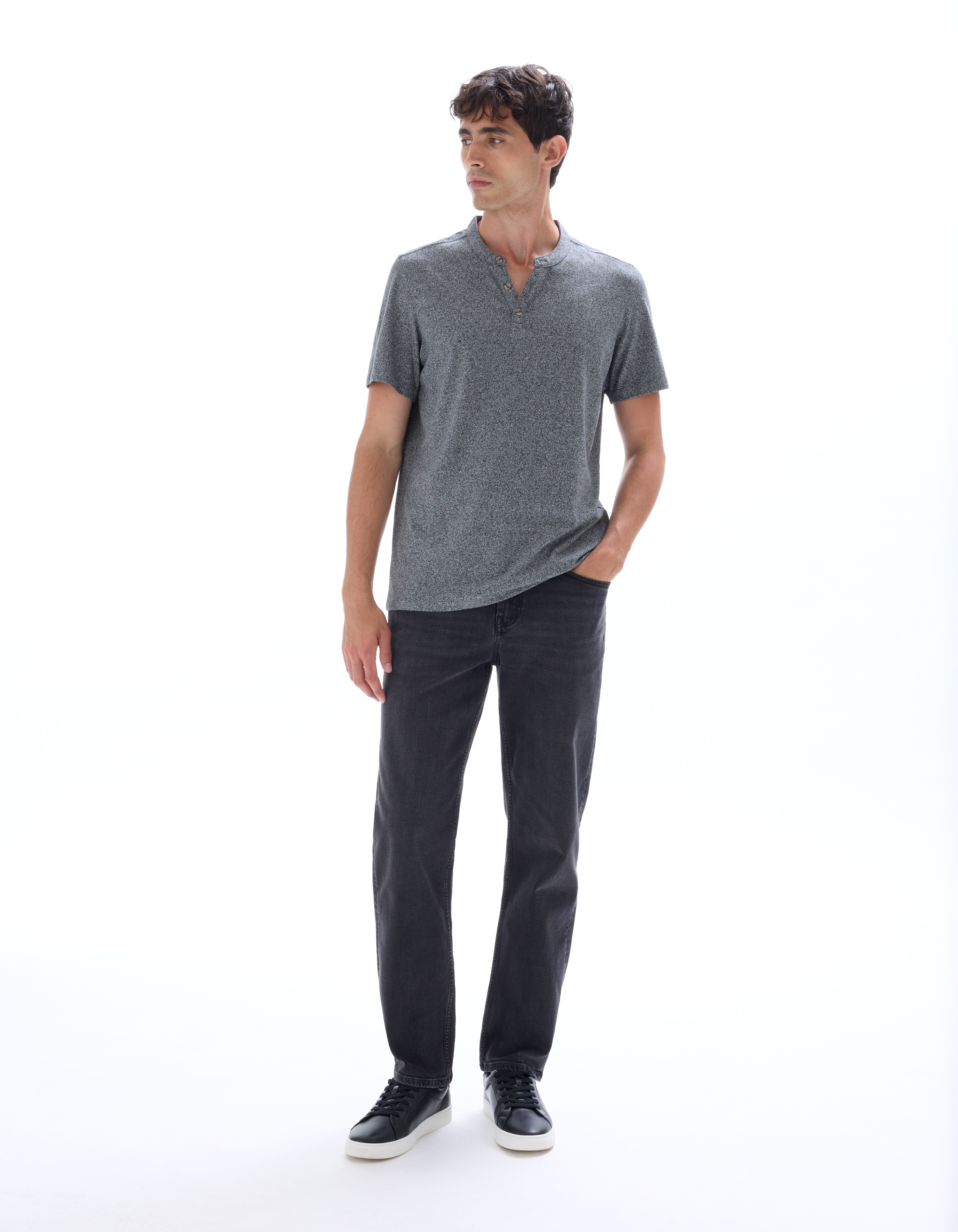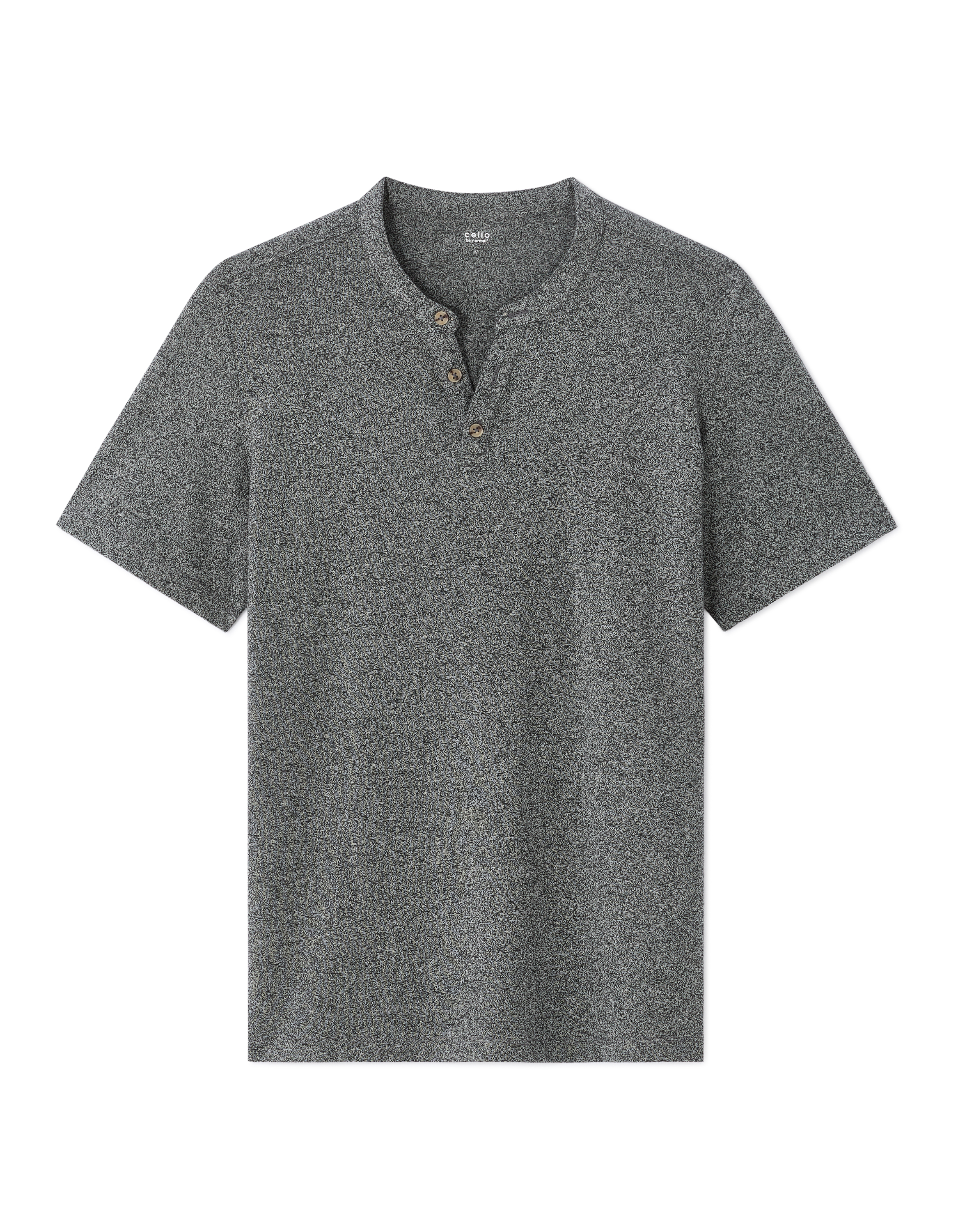 Ce t-shirt pour homme allie un col henley boutonné et un tissu chiné en coton mélangé pour créer un style á  l'esprit casual cool.