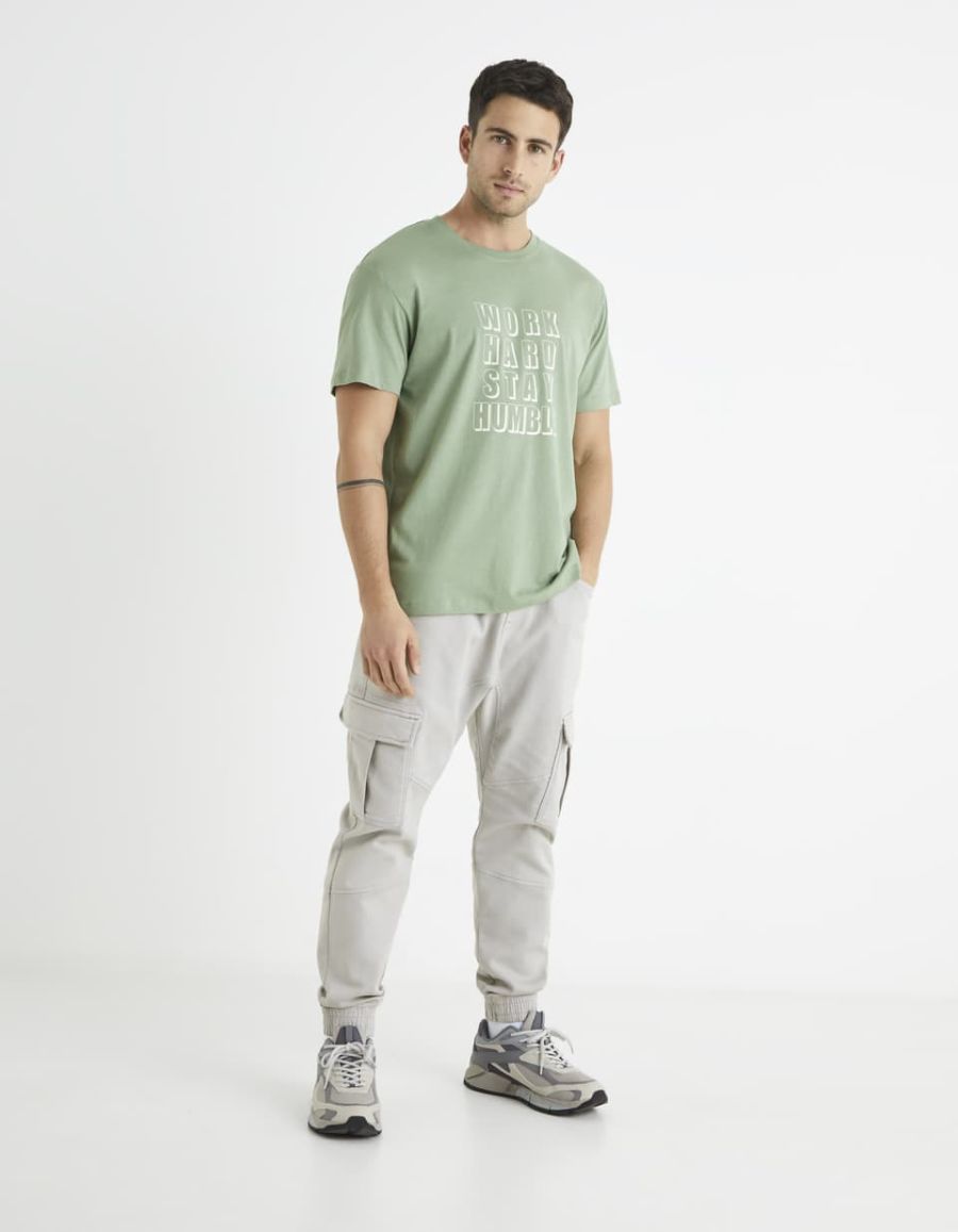 T-shirt pour homme 100% coton pour homme avec inscription sur le devant. Cool et moderne, ce t-shirt ira parfaitement avec un jean et une paire de baskets. Il possède des manches courtes et un col rond.