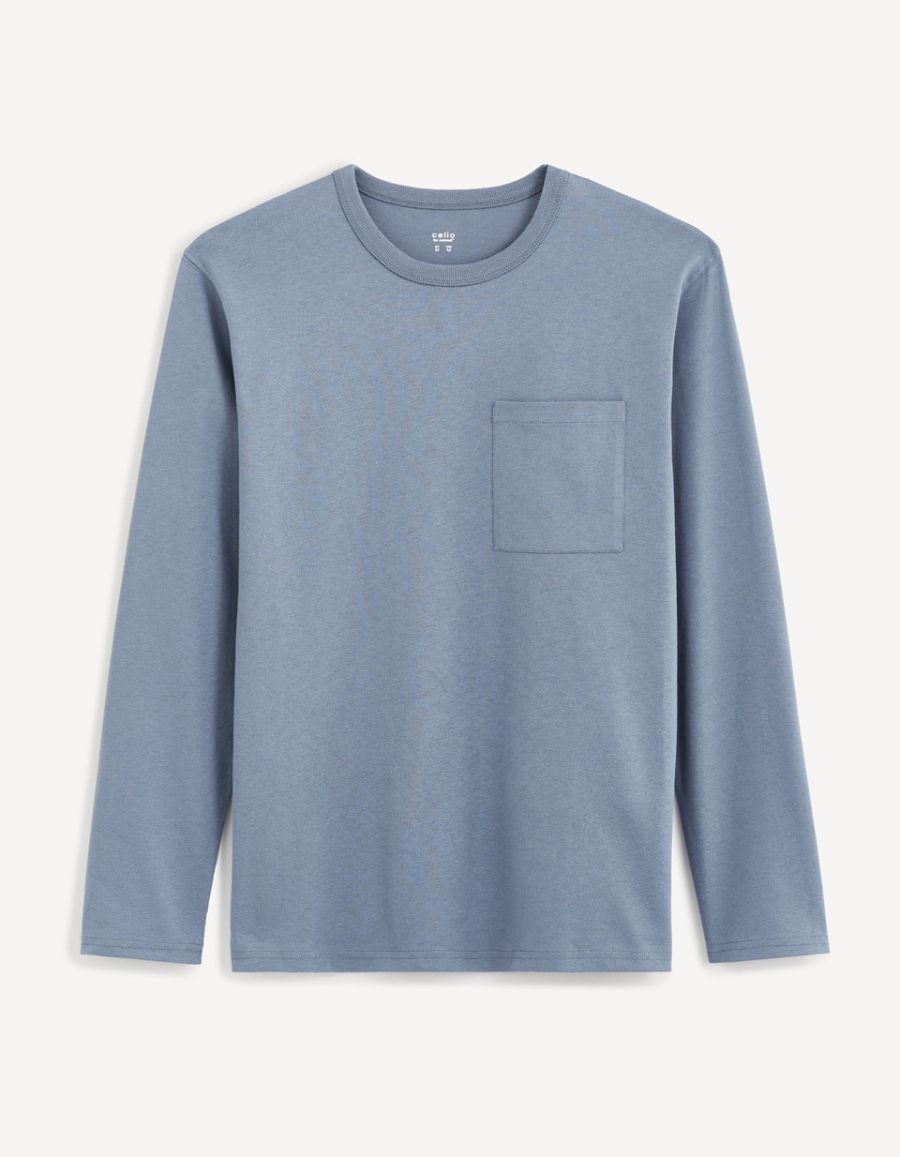 Adoptez le confort de ce t-shirt manches longues pour homme 100 % coton. Vous pourrez le porter directement sous une veste casual, avec un jean ou un chino. Le t-shirt a un col rond et est équipé d'une poche placée sur la poitrine.