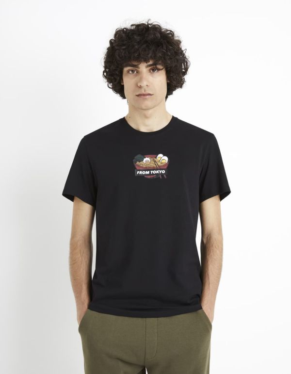 Inspiration food et voyage pour ce t-shirt homme et son imprimé placé sur la poitrine. Avec son son tissu 100 % coton, il est très confortable et il se portera avec un pantalon chino et des baskets, dans un esprit casual cool.