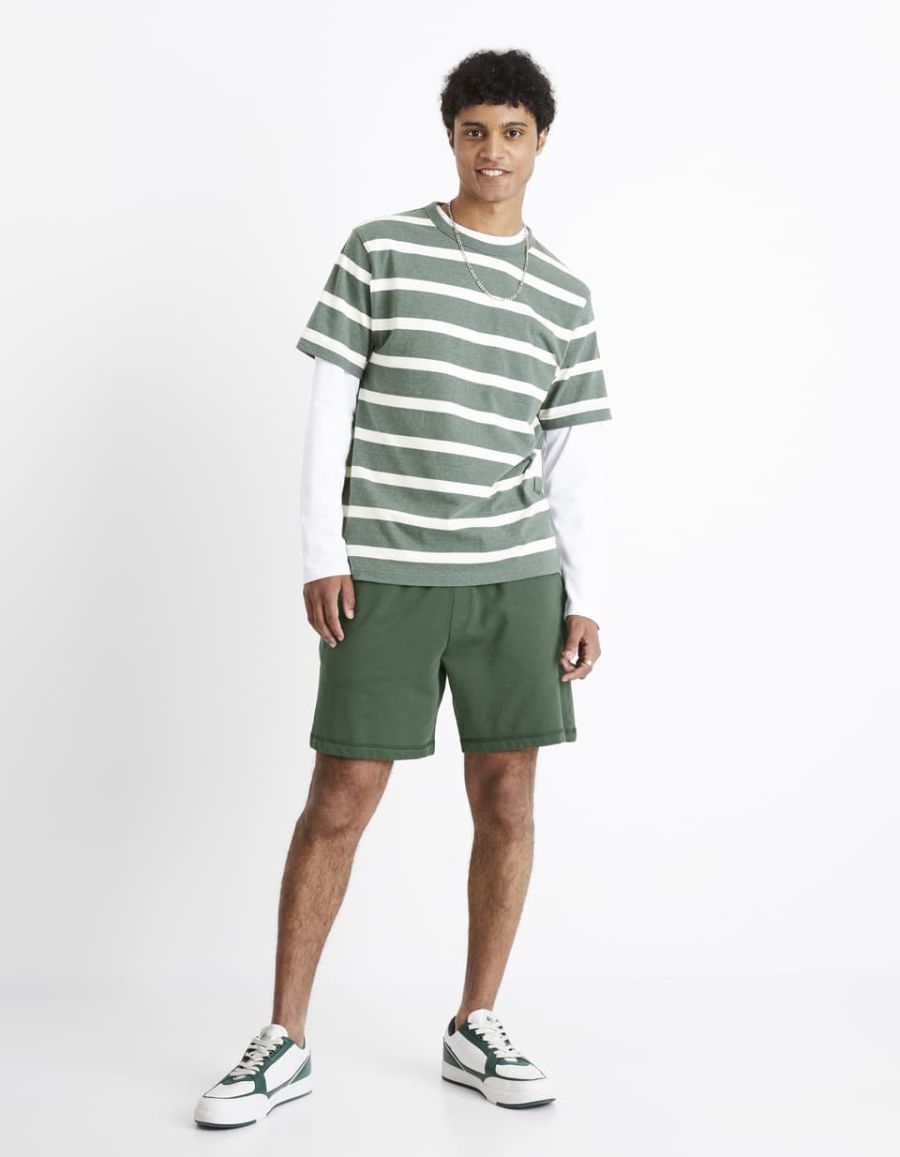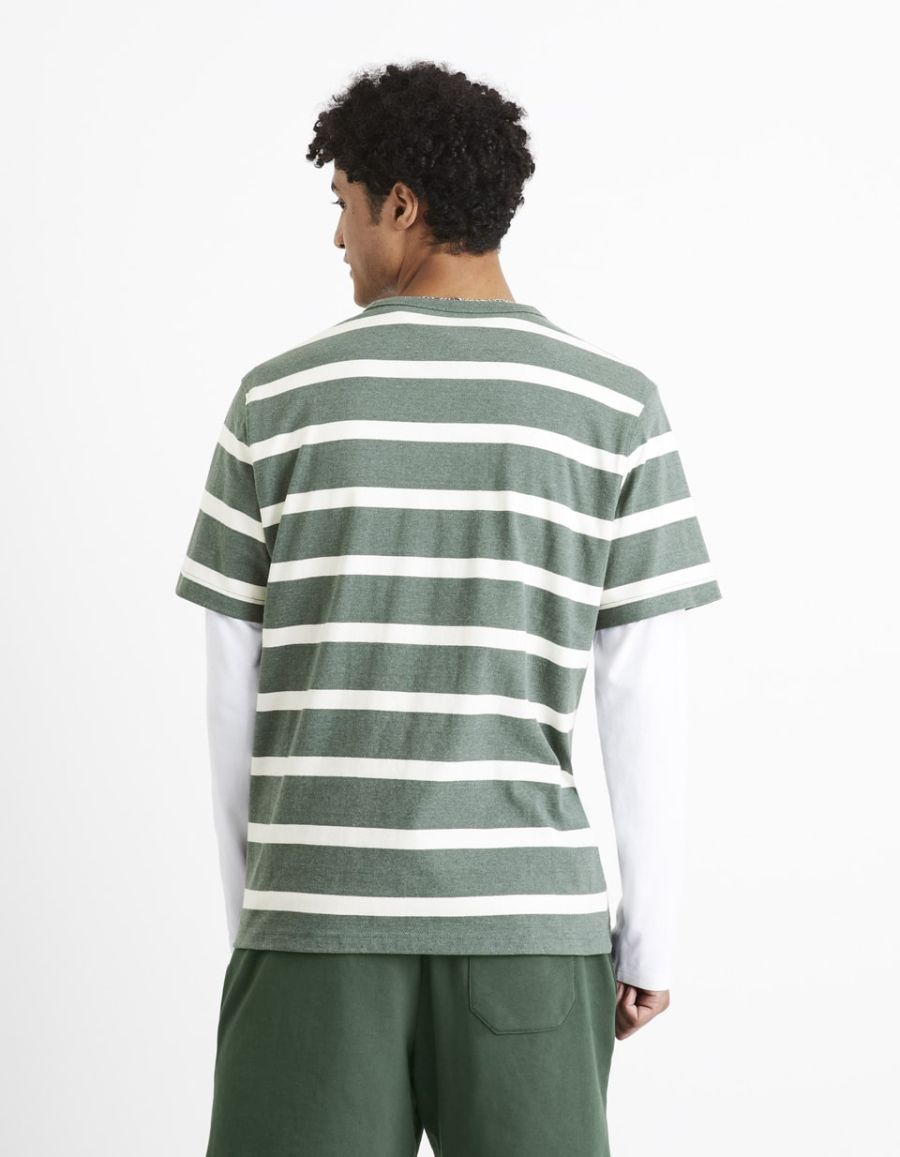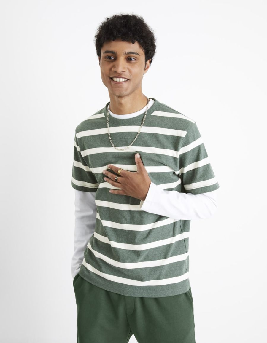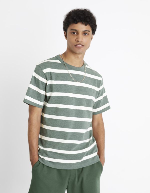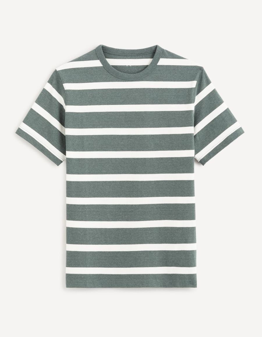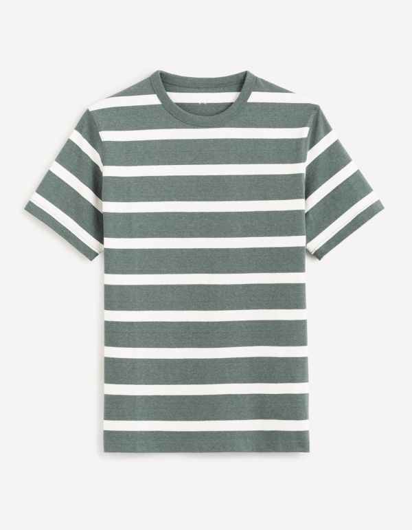 T-shirt col rond 100% coton à rayures - vert