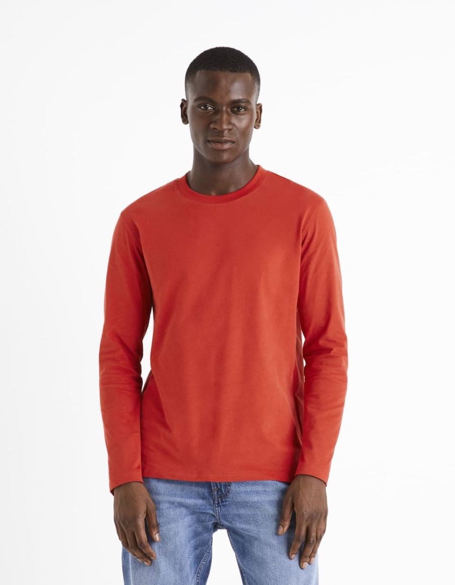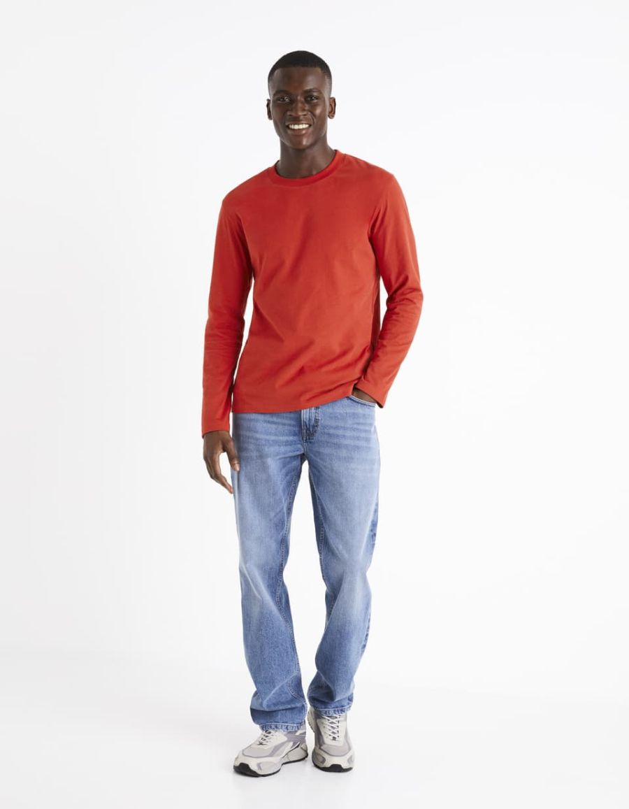 T-shirt coupe boxy, au toucher doux en 100% coton de couleur unie, avec des manches longues, un col rond et une poche sur le coeur. Ce t-shirt a une coupe carrée, aussi appelée boxy fit, c'est à dire des lignes droites et rectangulaires qui donnent un loo