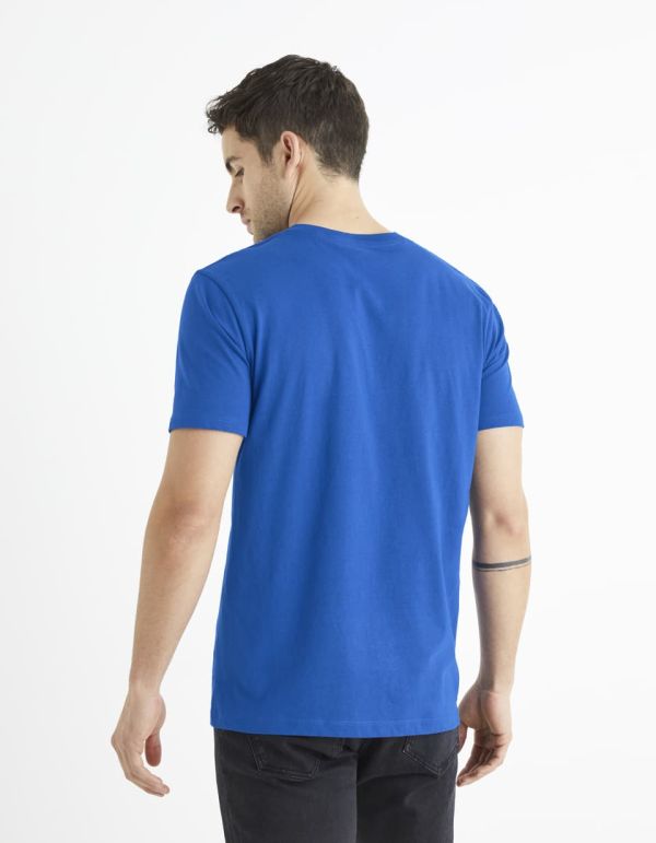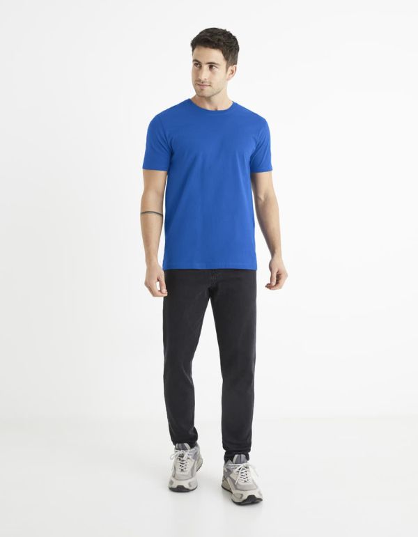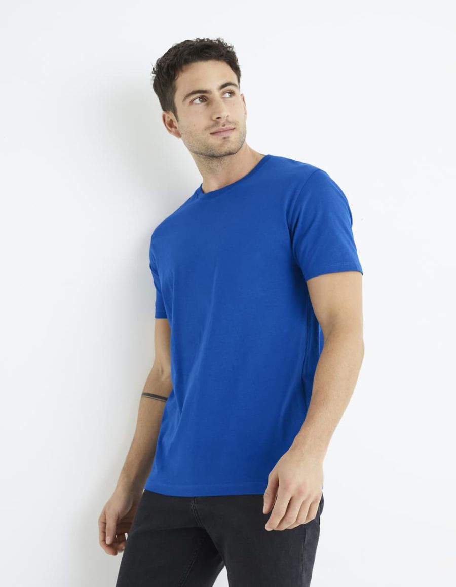 Vous aimerez porter ce t-shirt bleu manches courtes pour homme, dont le tissu à la composition 100 % coton est très confortable. Le t-shirt col rond coupe regular, c’est parfait pour les hommes qui enfilent le premier haut qui leur passe entre les mains d