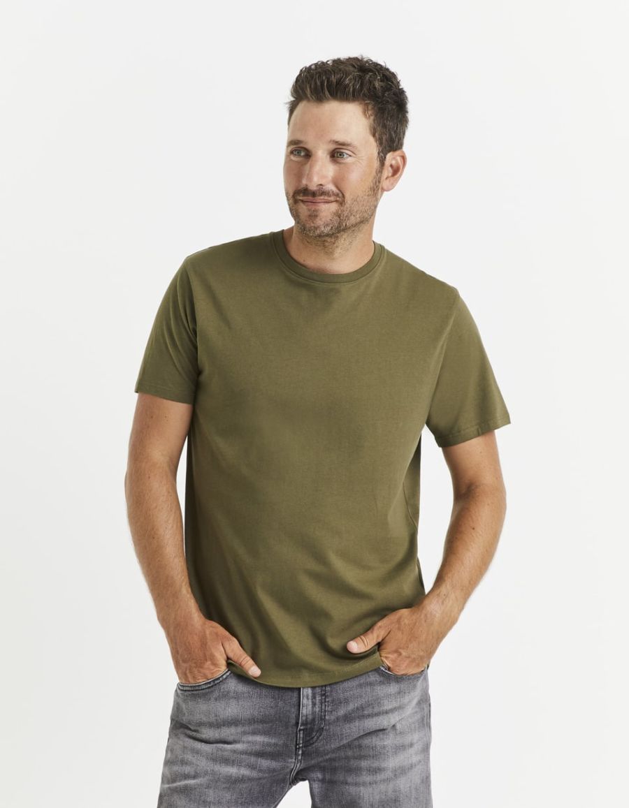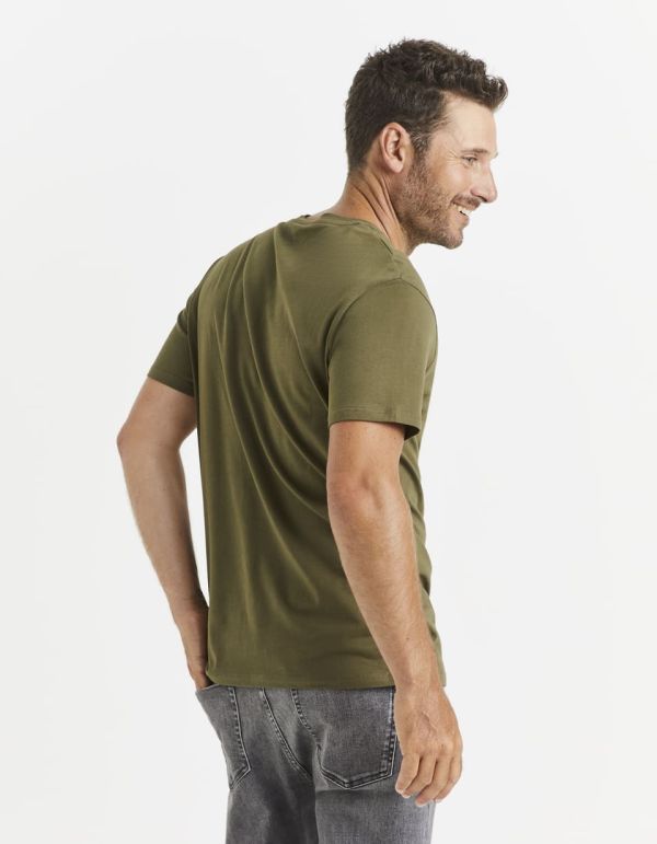T-shirt regular col rond 100% coton fleuri - kaki T-shirt regular col rond 100% coton fleuri - kaki Nouveauté