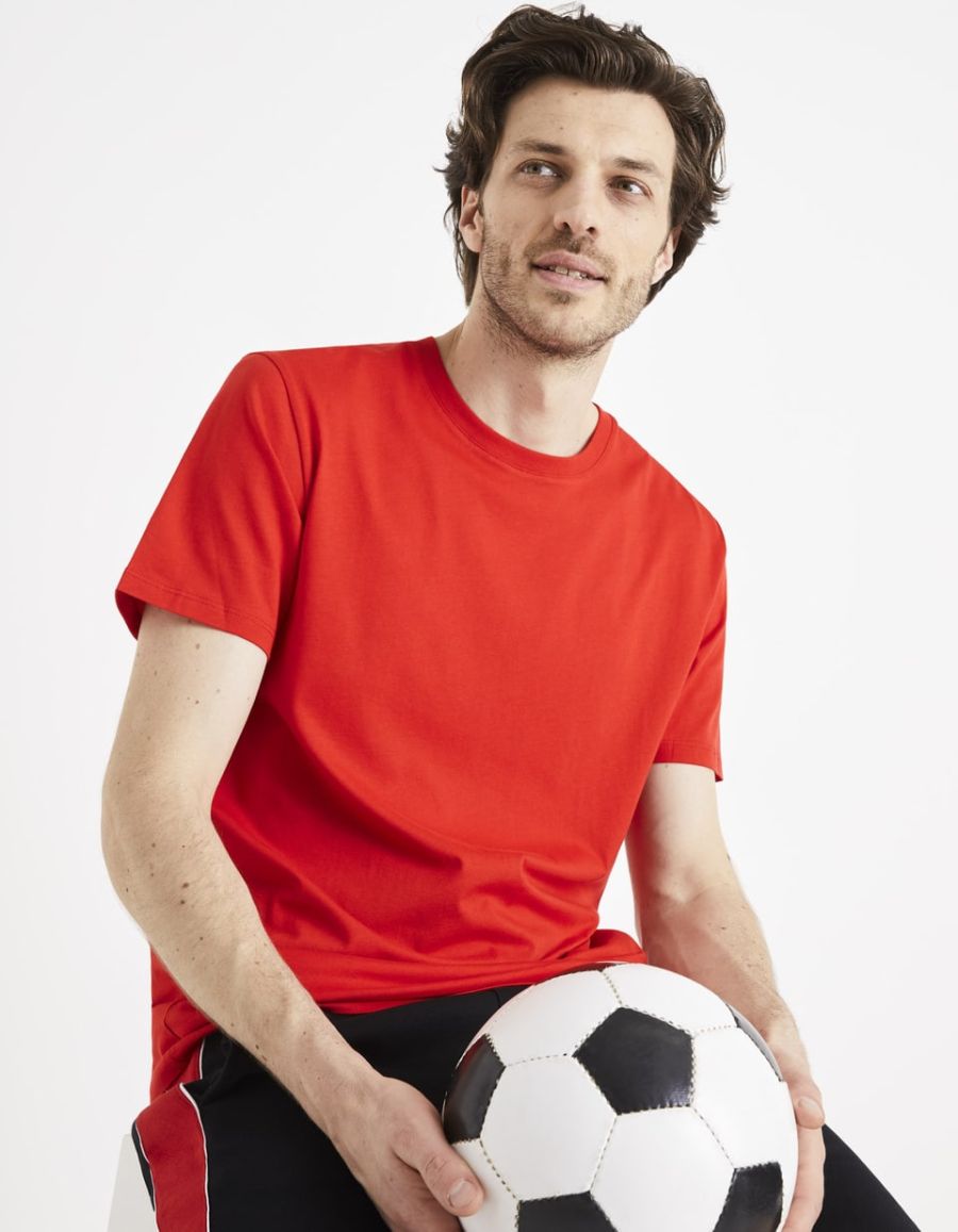 Vous aimerez porter ce t-shirt pour homme, dont le tissu à la composition 100 % coton est très confortable. Il accompagnera aussi bien un jean qu'un pantalon chino, dans un esprit décontracté. Le t-shirt a des manches courtes.
