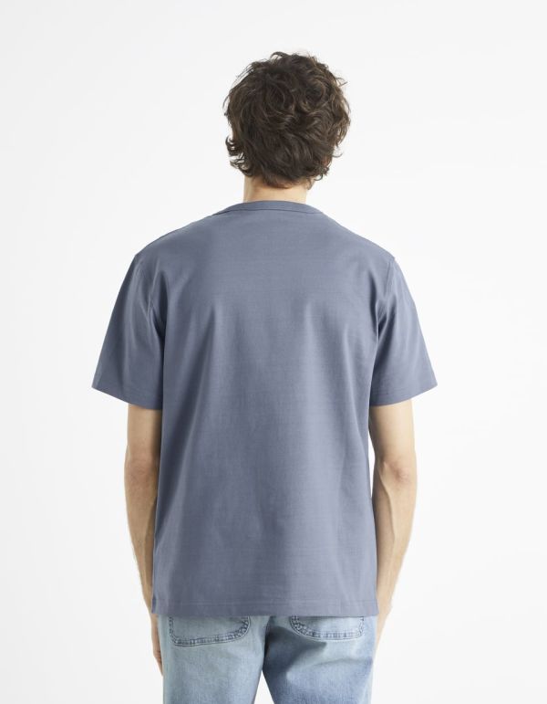 Basique indispensable du vestiaire masculin, le t-shirt homme bleu 100 % coton accompagnera toutes les tenues casual. Il pourra ainsi être assorti à une chemise ouverte, pour un style cool et décontracté. Il accompagnera également très bien un bermuda ou