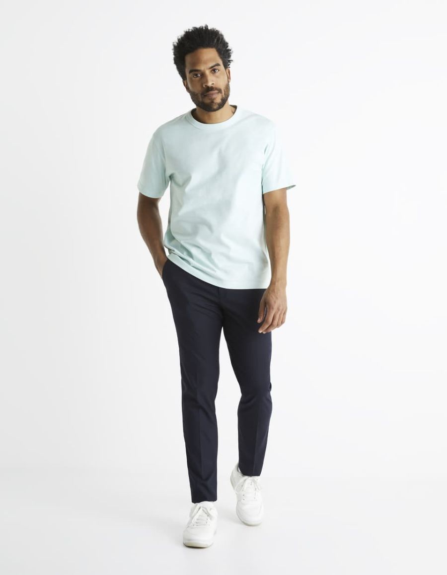 Basique indispensable du vestiaire masculin, le t-shirt homme uni 100 % coton accompagnera toutes les tenues casual. Il pourra ainsi être assorti à une chemise ouverte, pour un style cool et décontracté. Il accompagnera également très bien un bermuda ou e