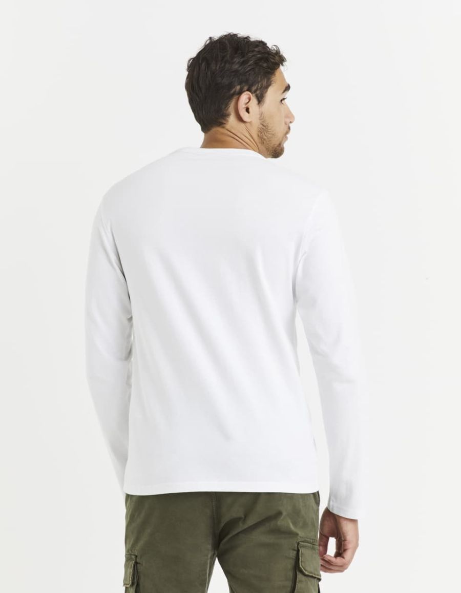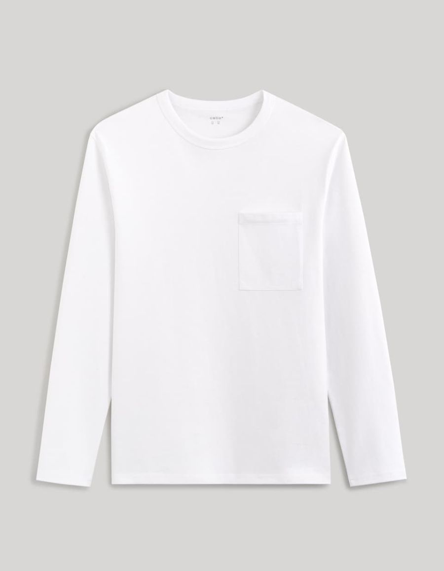Adoptez le confort de ce t-shirt manches longues pour homme 100 % coton. Vous pourrez le porter directement sous une veste casual, avec un jean ou un chino. Le t-shirt a un col rond et est équipé d'une poche placée sur la poitrine.