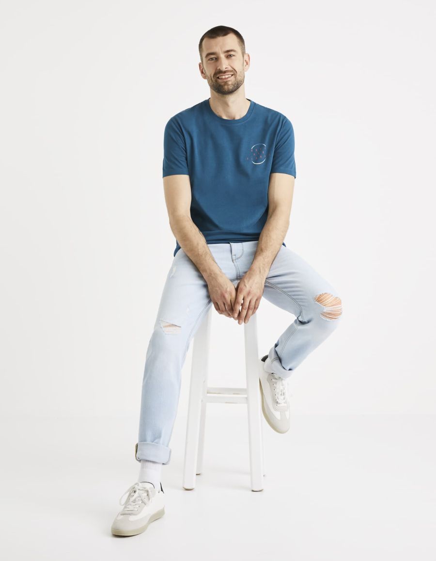 Facile à assortir, ce t-shirt pour homme ira très bien avec un pantalon chino, mais aussi un jean. Il est agrémenté d'un motif imprimé discret au niveau de la poitrine. Son col est rond et sa composition est 100 % coton.
