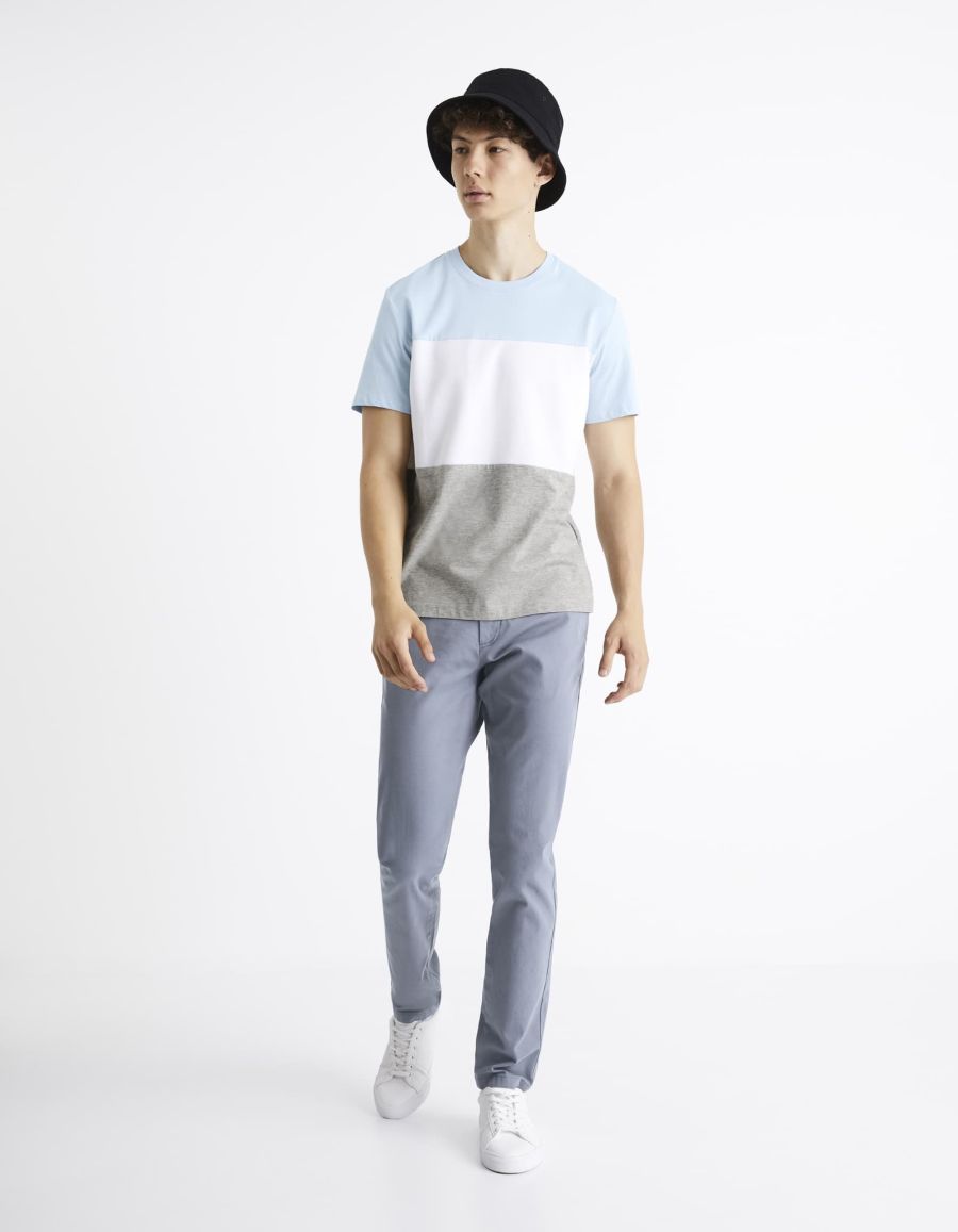 Le t-shirt col rond tricolore, dans un esprit colorblock, est la pièce tendance qui permet de transformer un look. Ce t-shirt homme est à manches courtes et 100 % coton. Il se portera facilement, avec un jean ou un bermuda.