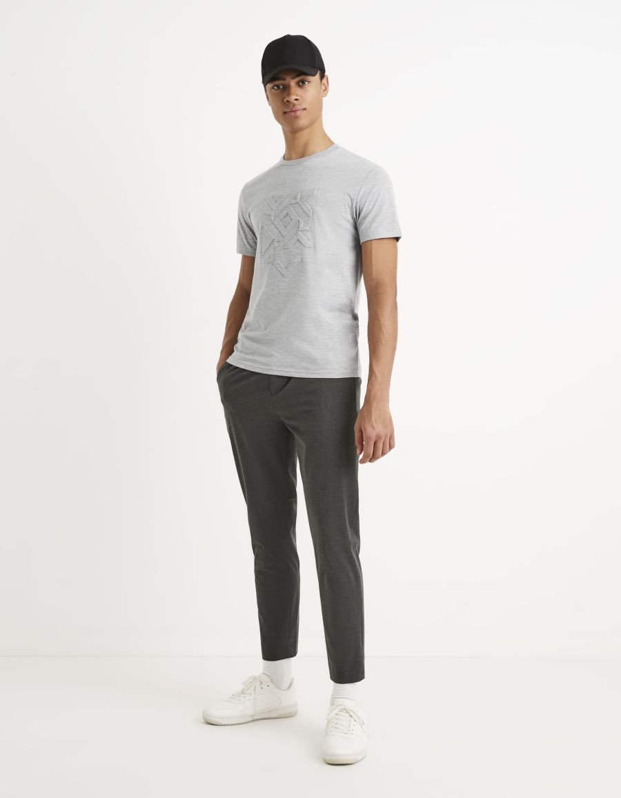 Ce t-shirt pour homme a un motif embossé sur la poitrine dont le relief apporte une touche à la fois originale et discrète. Vous le porterez facilement avec un jean et des baskets tendances. Le t-shirt est confectionné dans un coton mélangé.