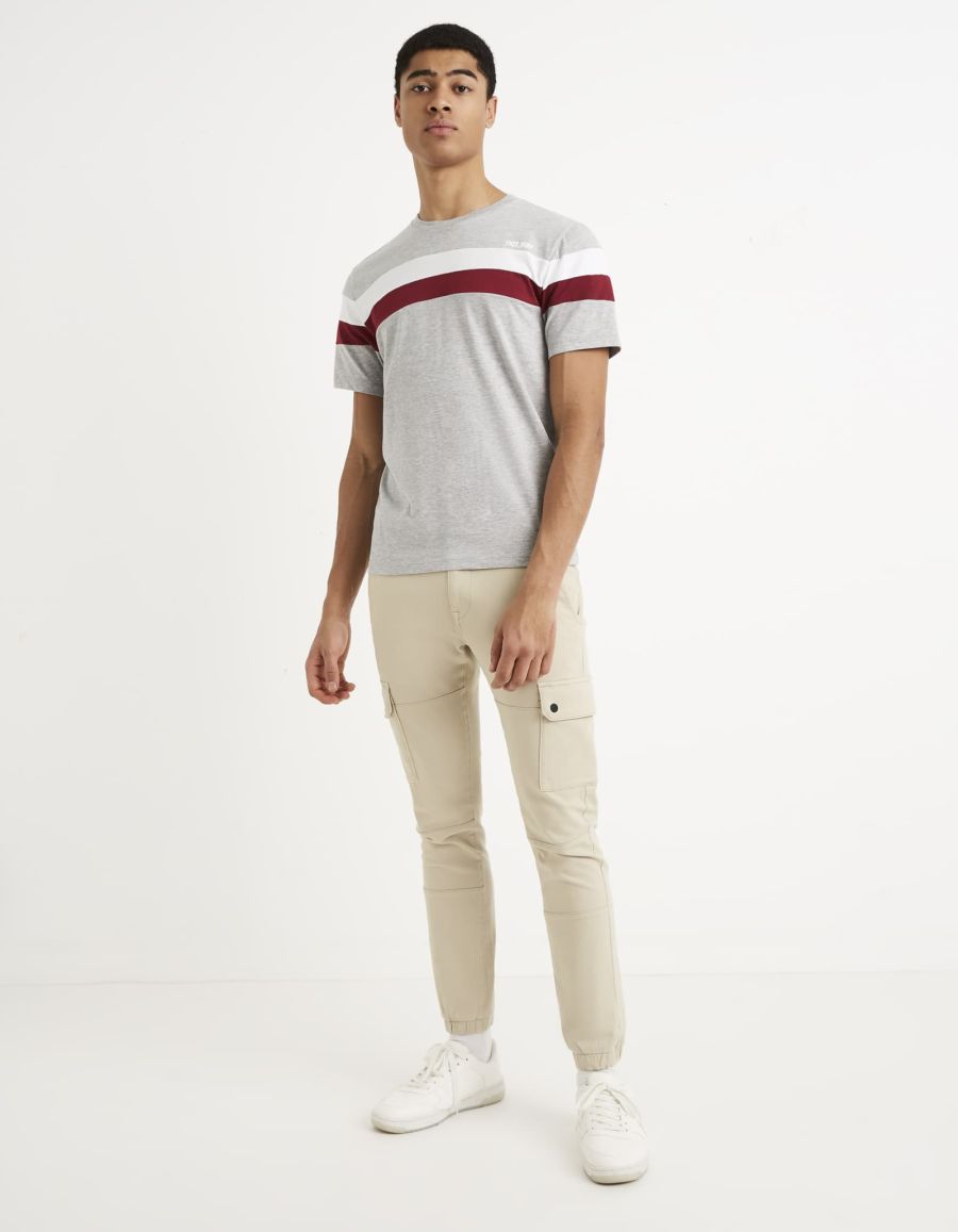 Parfait pour un look décontracté, ce t-shirt homme accompagnera facilement un chino et des baskets. Ses bandes colorées qui traversent la poitrine apporteront le petit détail qui change tout à votre tenue. Le t-shirt est 100 % coton, avec des manches cour