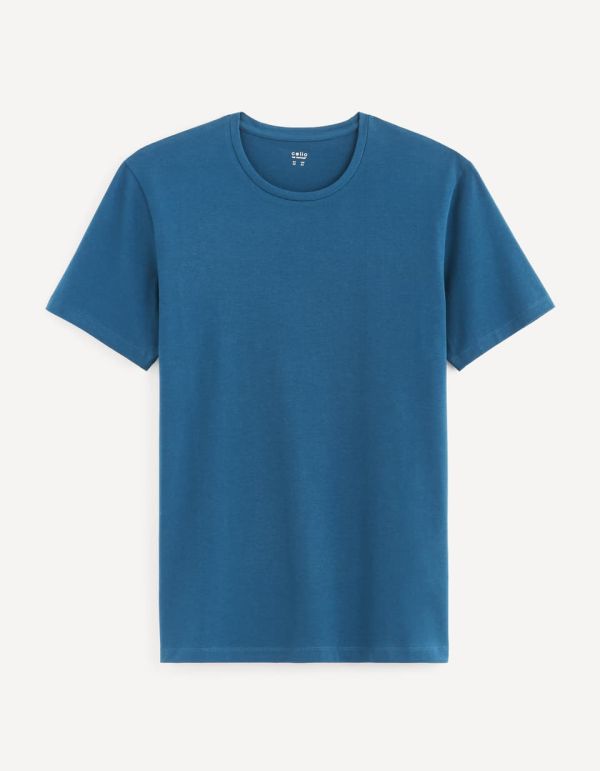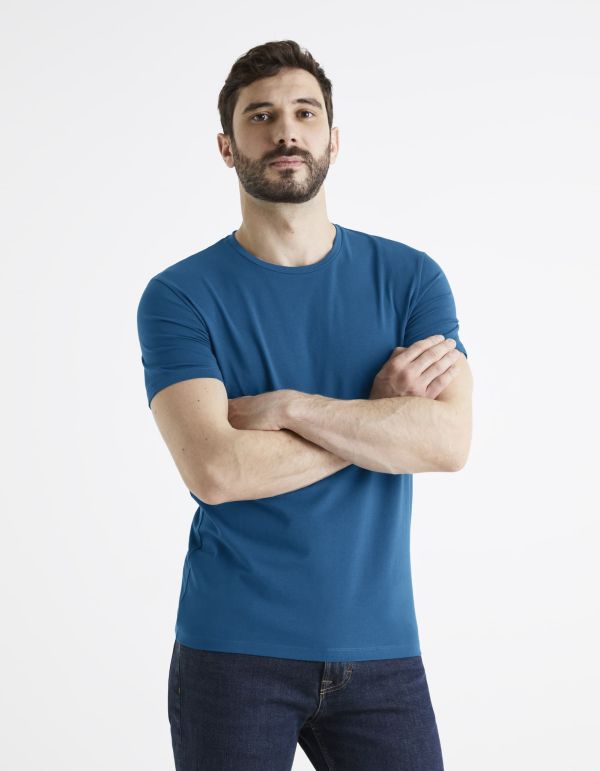 T-shirt slim col rond en coton stretch - bleu clair T-shirt slim col rond en coton stretch - bleu clair Nouveauté