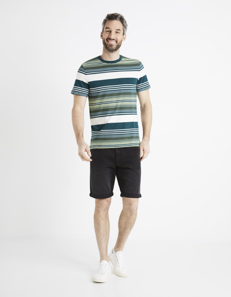 T-shirt col rond rayé - vert foncé
