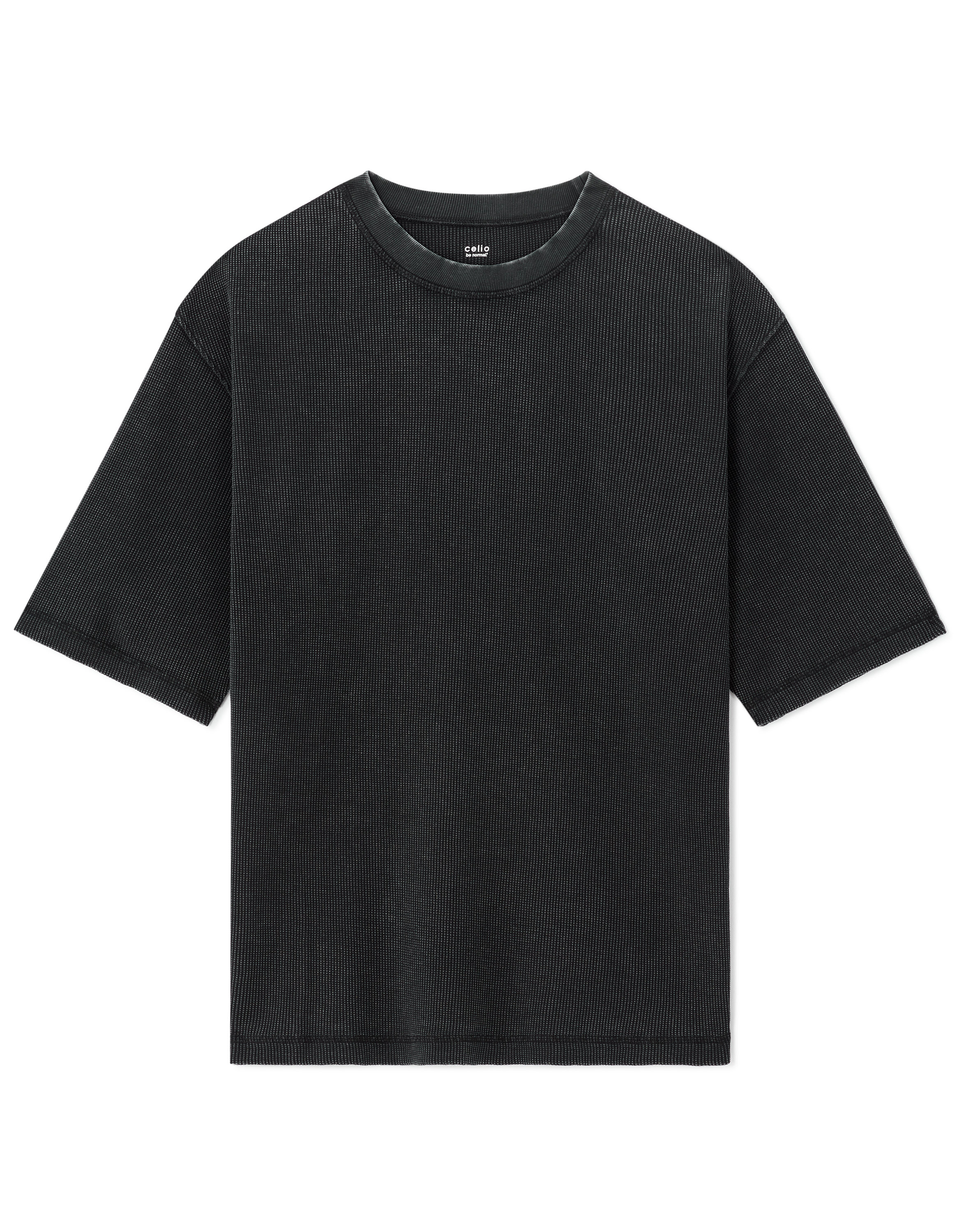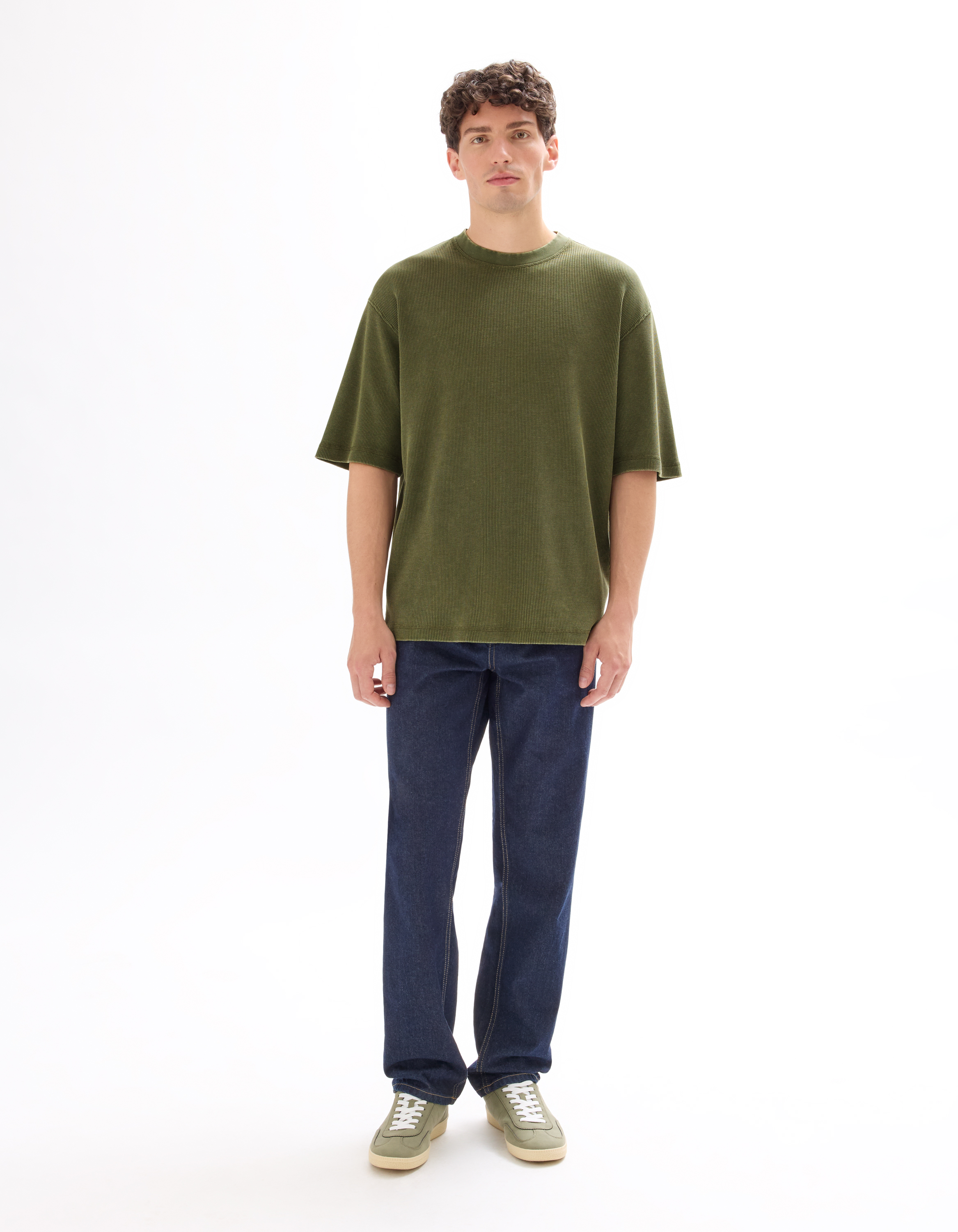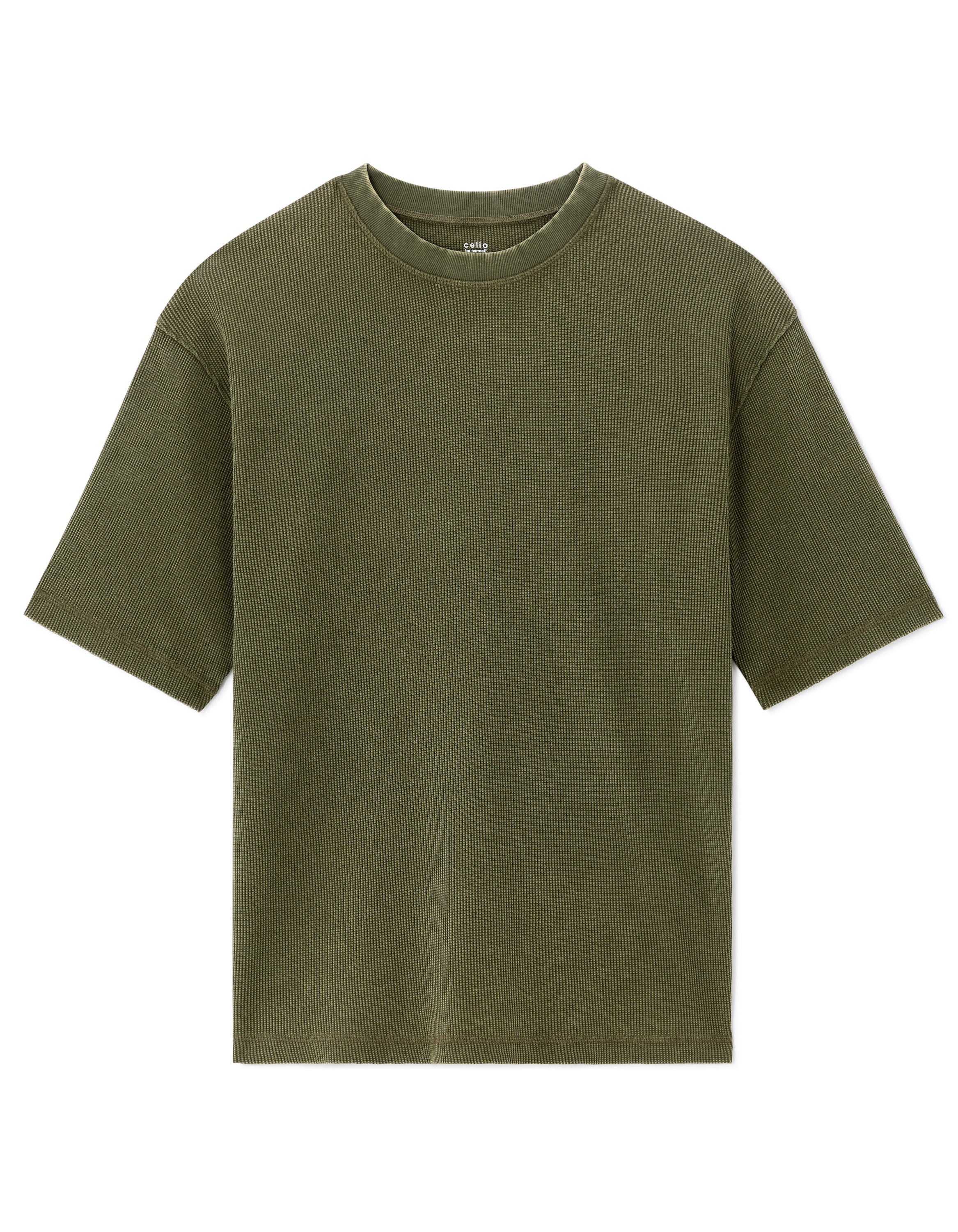 T-shirt oversize col rond 100% coton gaufré - kaki