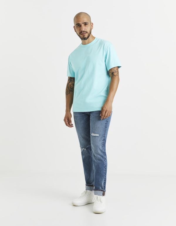 Vous porterez ce t-shirt homme tout simplement avec un jean et des basket, pour créer un look confortable et décontracté. Le t-shirt a un col rond et des manches courtes. Il est confectionné en 100% coton.