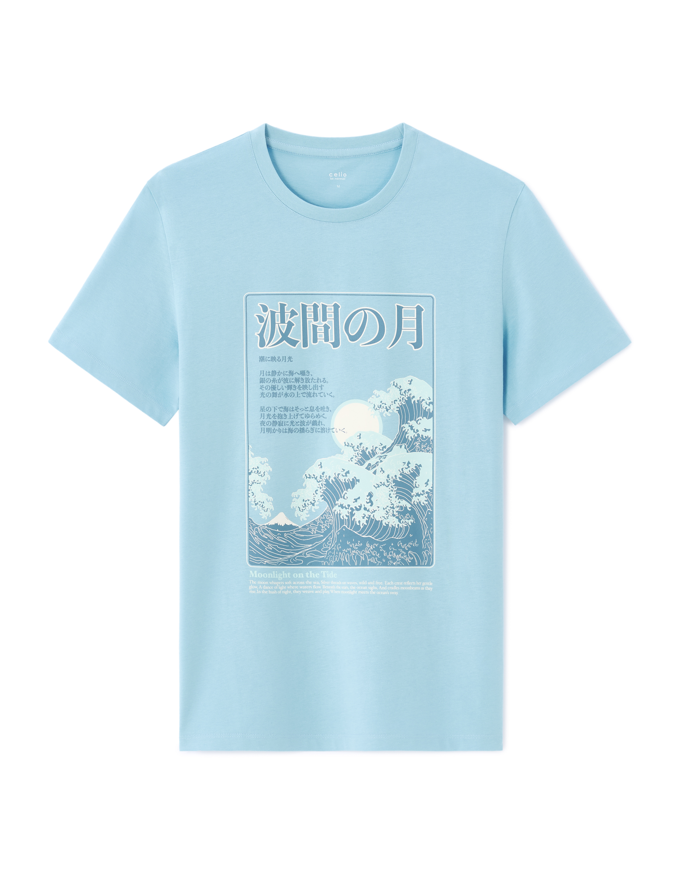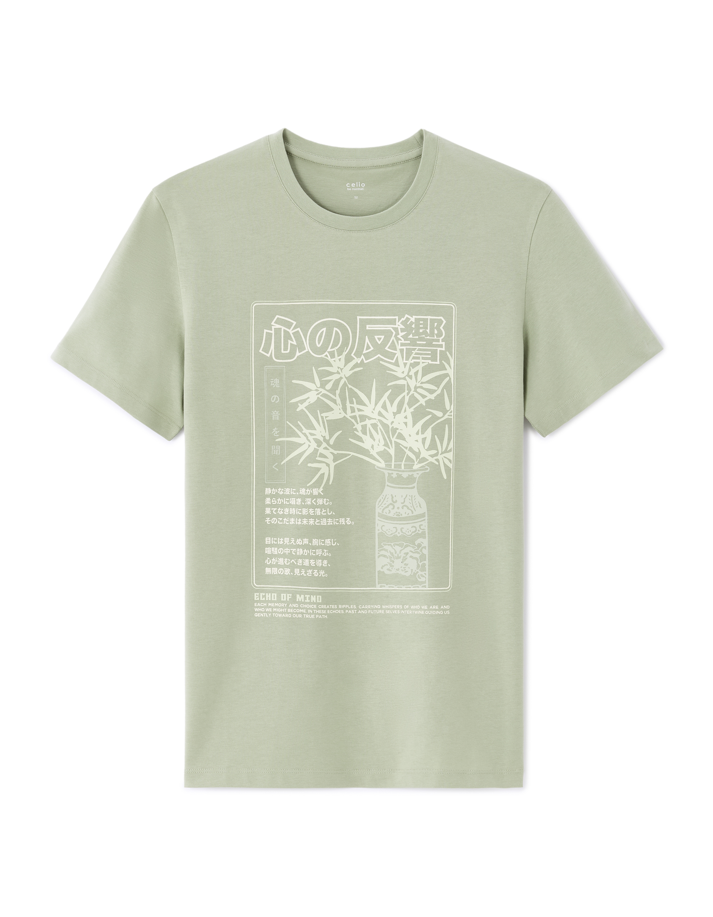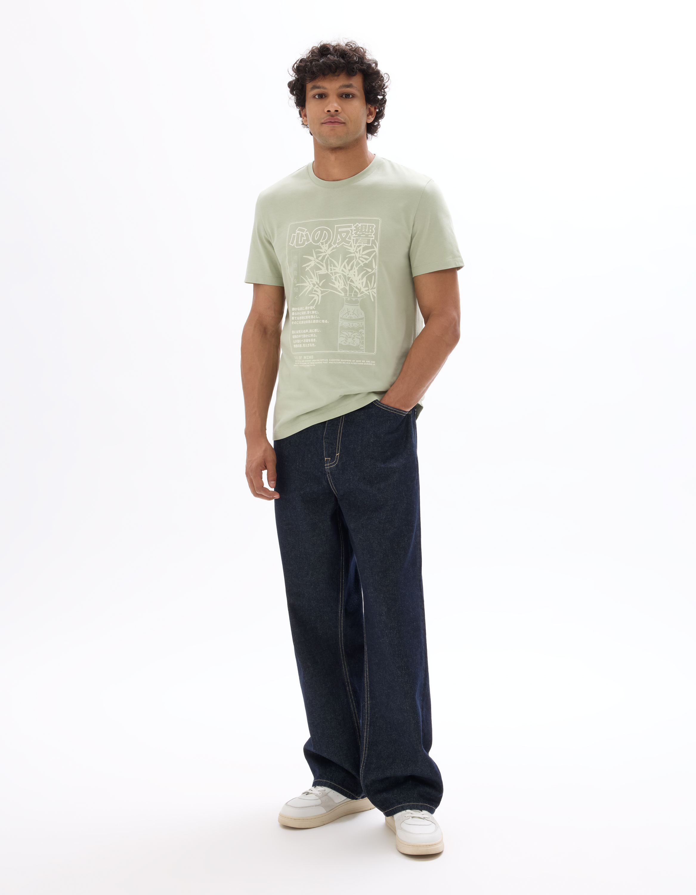 T-shirt regular col rond 100% coton imprimé asie - sauge