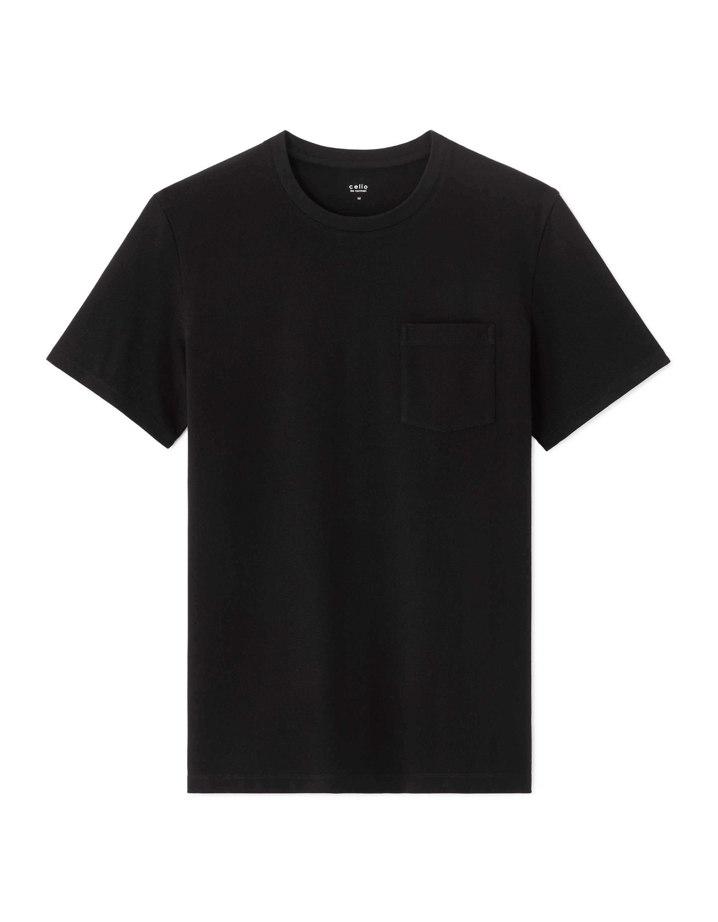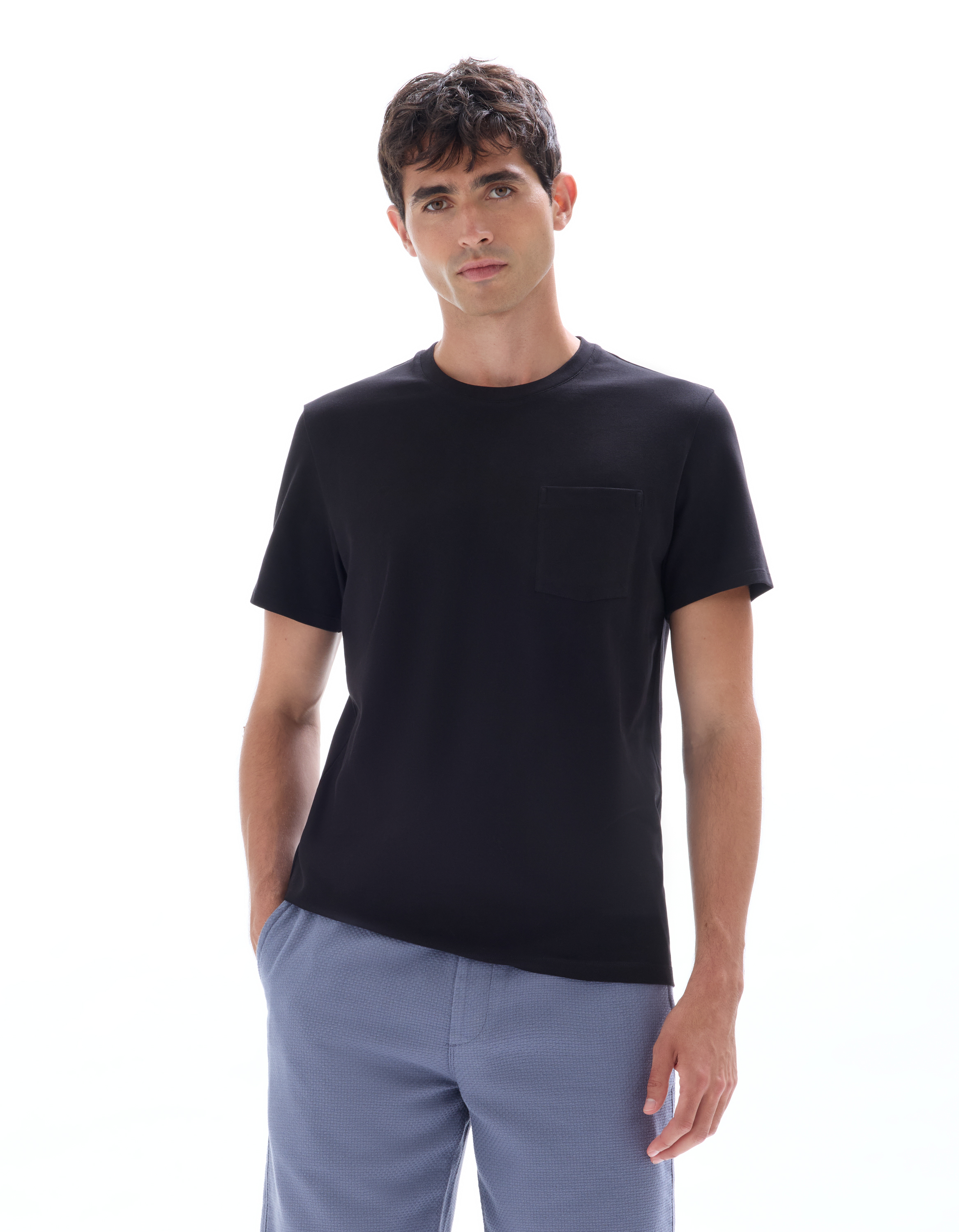 T-shirt regular col rond 100% coton piqué stretch - noir
