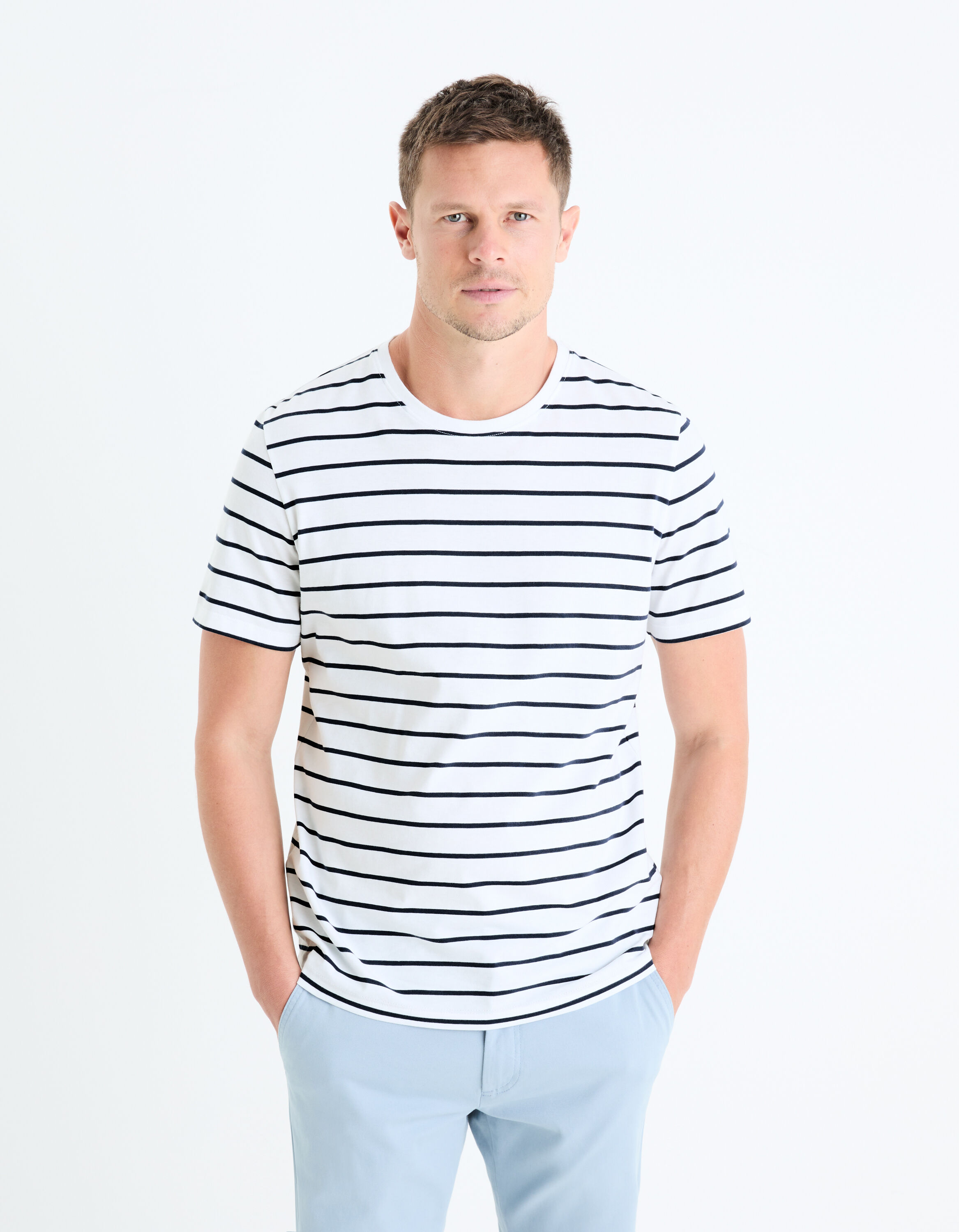 Le t-shirt à rayures façon marinière est un indispensable du vestiaire masculin. Parfait pour compléter un jean ou un chino, ce t-shirt homme ajoute une touche tendance à un look décontracté. Son tissu 100 % coton est très agréable à porter.