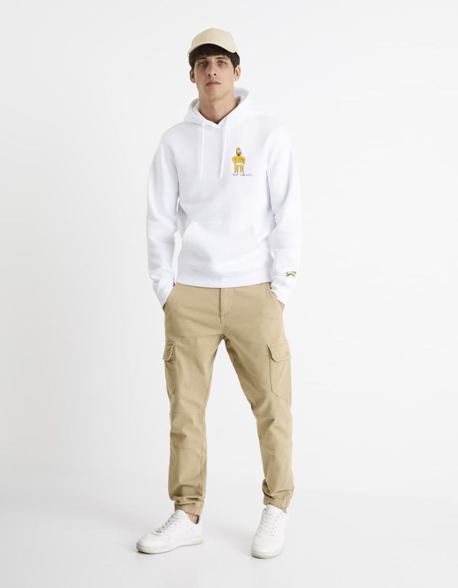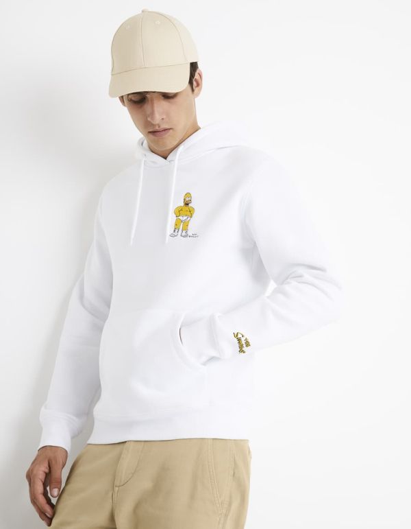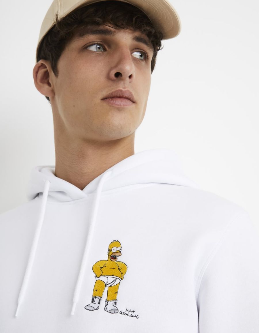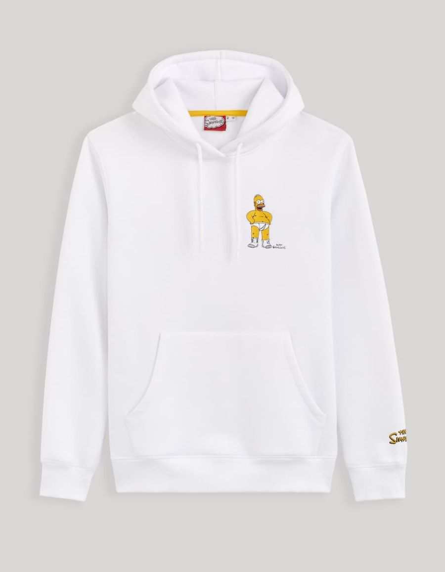 Sur le devant de ce sweatshirt blanc pour homme, retrouvez une image d’Homer Simpson, en caleçon et chaussettes, le père de famille toujours aussi à l’aise. Ce hoodie en coton mélangé possède une capuche avec cordon de serrage, des manches longues et une