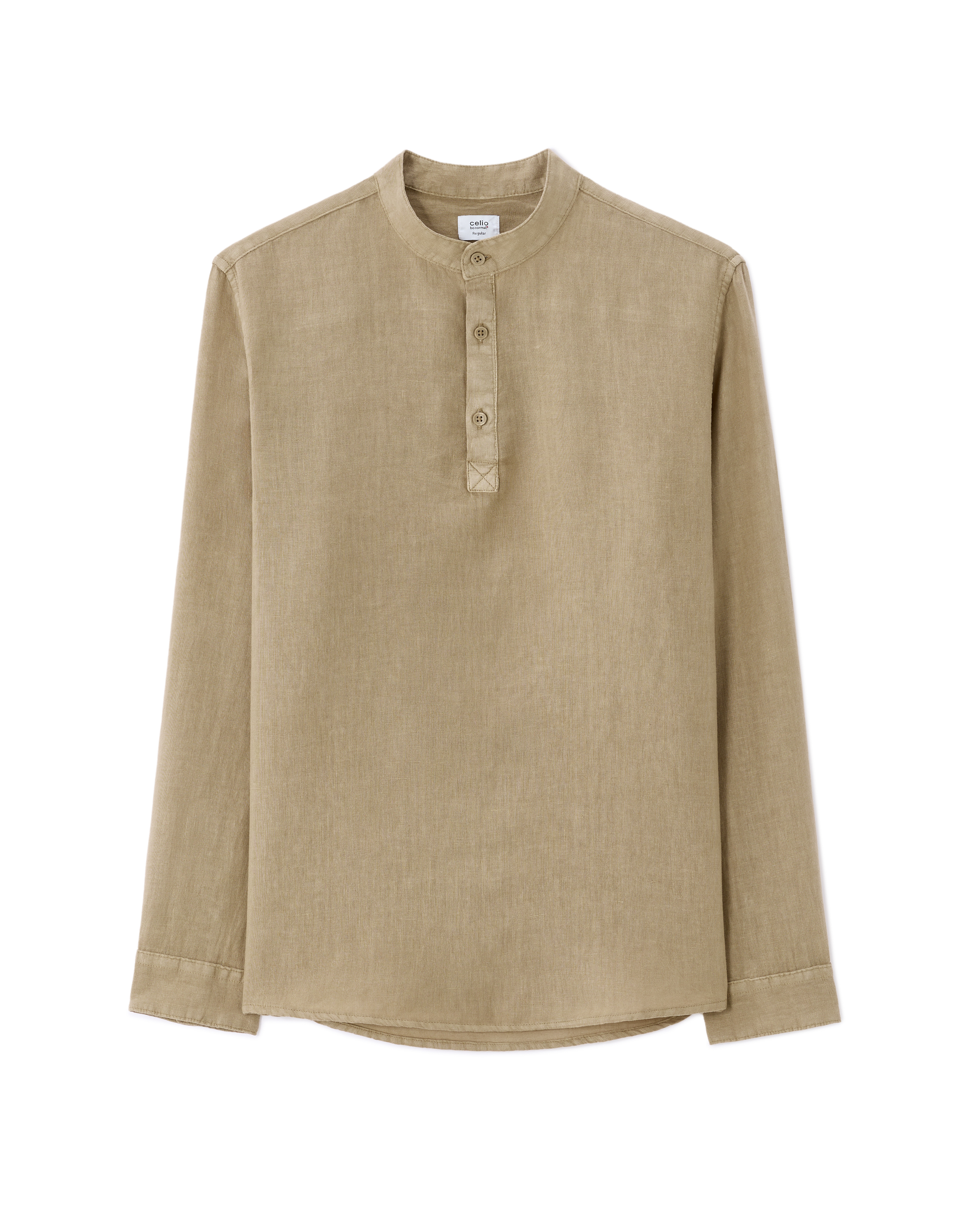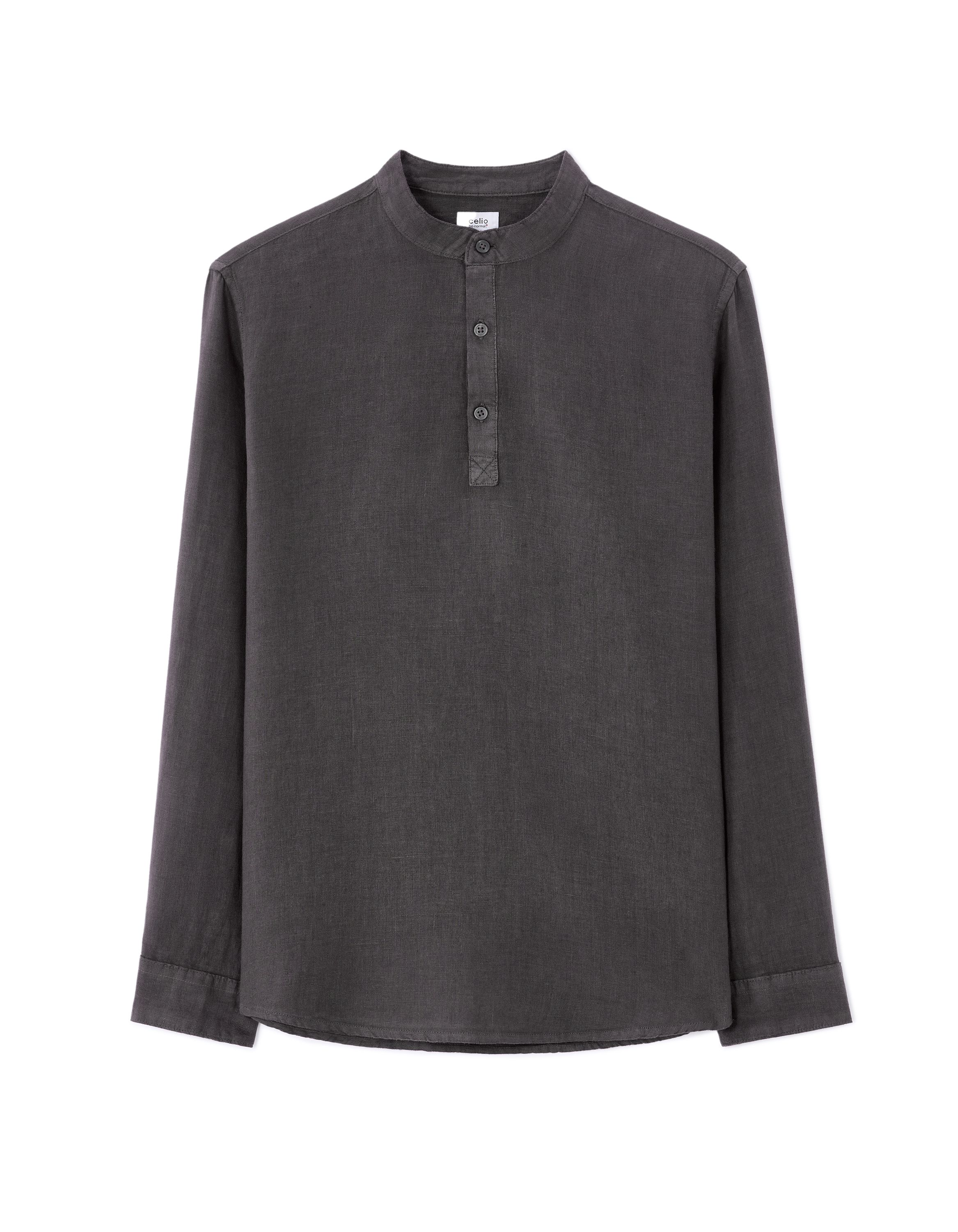 Créez un look casual chic pour homme avec cette chemise en lin au col mao, parfaite pour toutes vos envies.