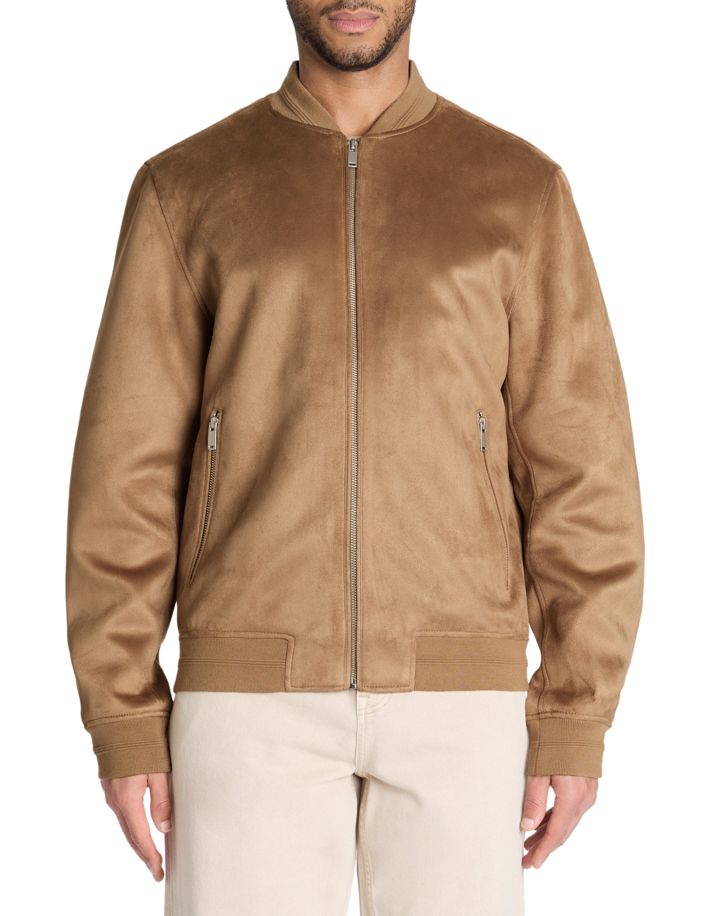 Ce bomber en faux daim est un incontournable du vestiaire de l'homme moderne.